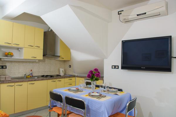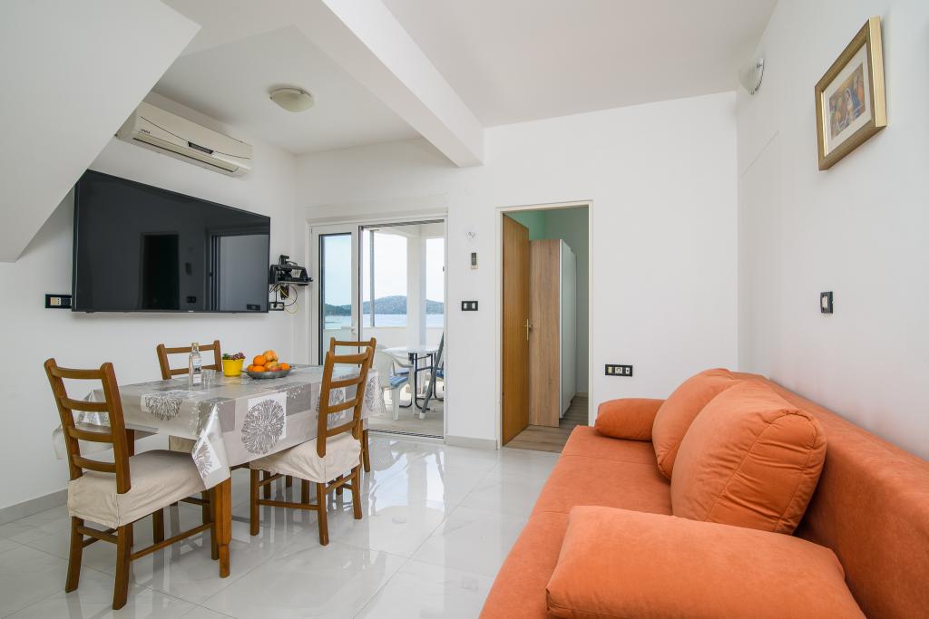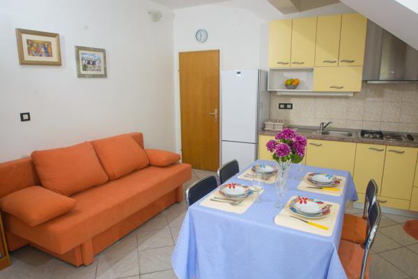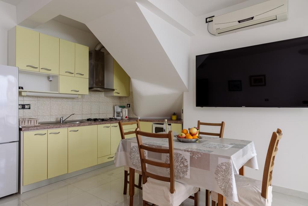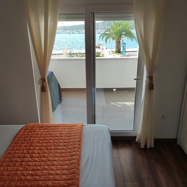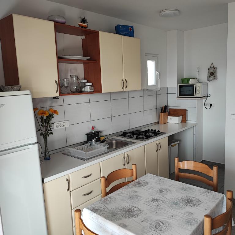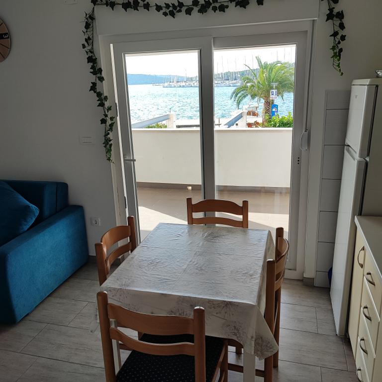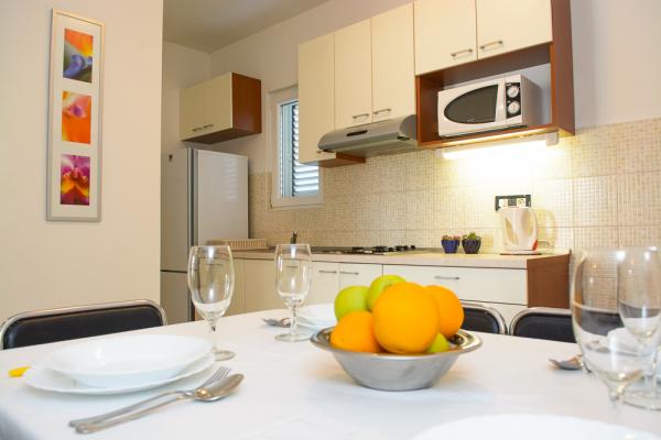 Apartmány se nacházejí v první řadě u moře s krásným výhledem na moře a jachty. V blízkosti je banka, bankomat, obchody, obchody se suvenýry, tržnice a restaurace, takže hosté mají veškerý volný čas výhradně na dovolenou. Místo je obklopeno dlouhou procházkou, která je také využívána pro cyklistiku.