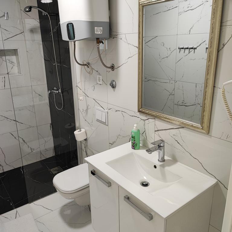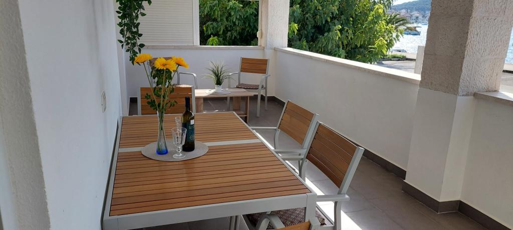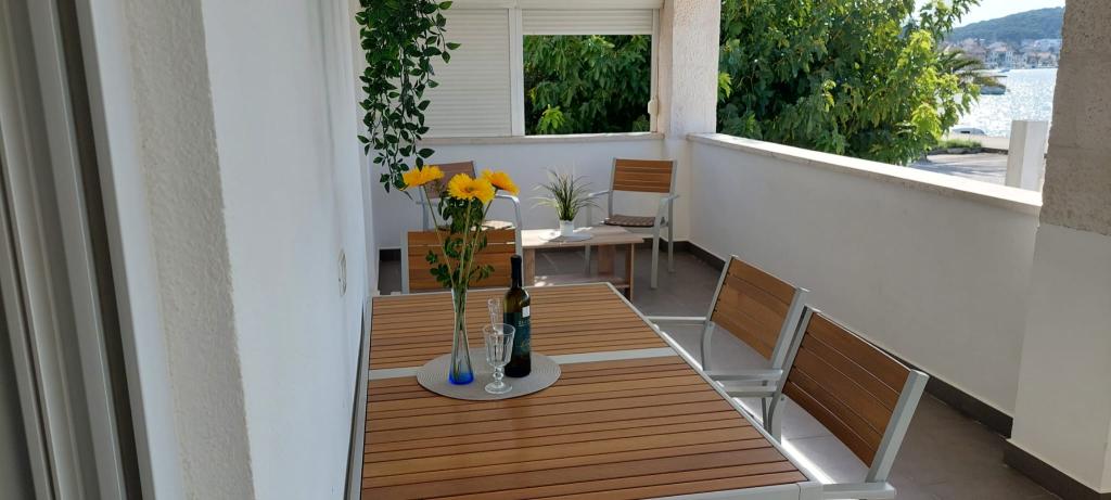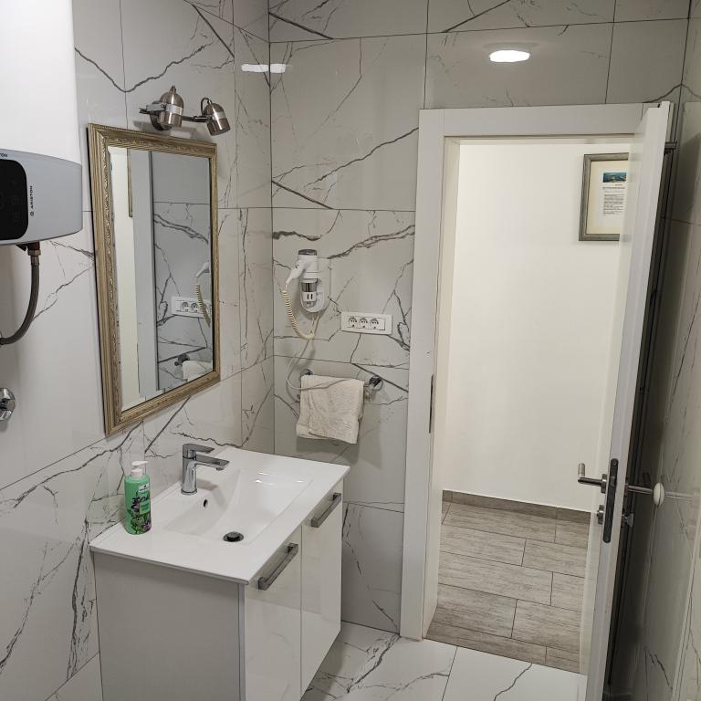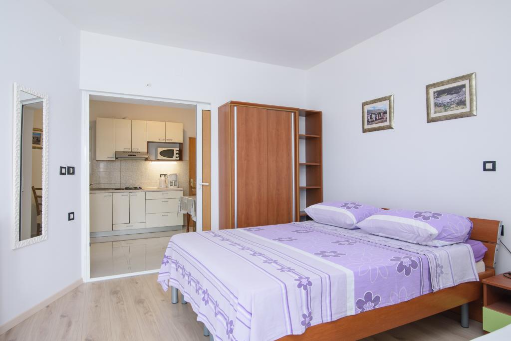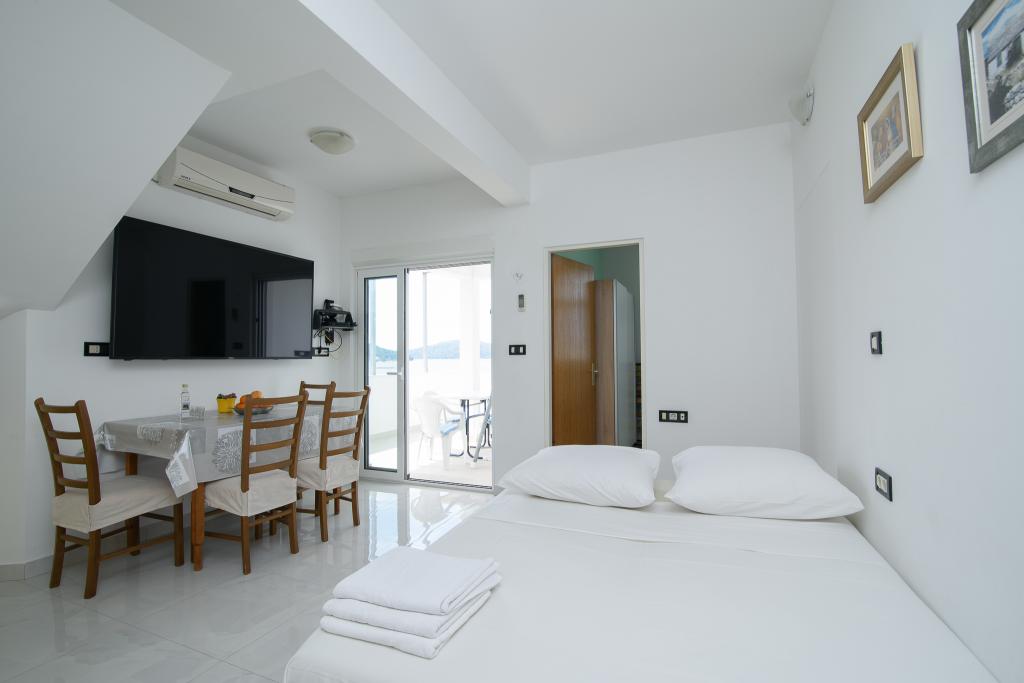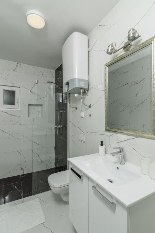 Apartmány se nacházejí v první řadě u moře s krásným výhledem na moře a jachty. V blízkosti je banka, bankomat, obchody, obchody se suvenýry, tržnice a restaurace, takže hosté mají veškerý volný čas výhradně na dovolenou. Místo je obklopeno dlouhou procházkou, která je také využívána pro cyklistiku.