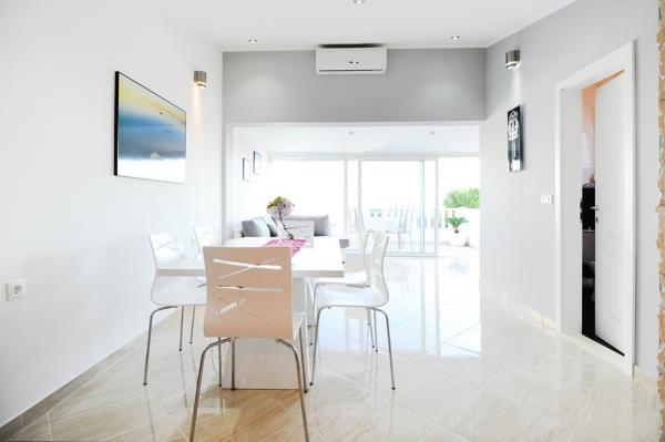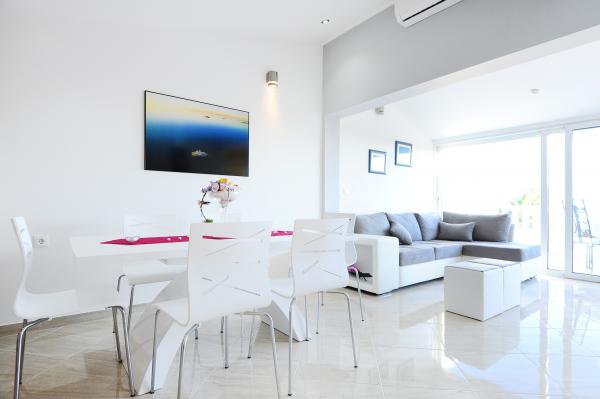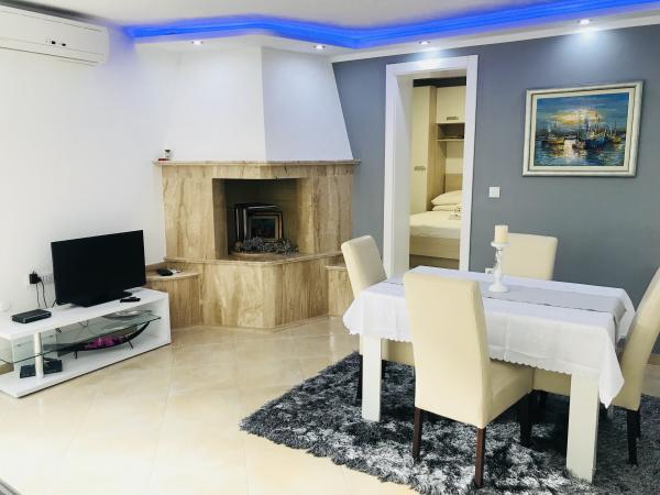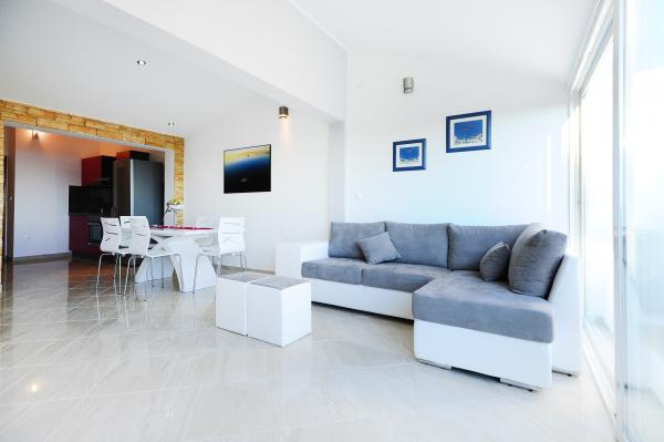 Dva nové apartmány v klidné části letoviska Rogoznica, nabízí vše, co potřebujete pro kompletní odpočinek a relaxaci, klid, vzdálenost od městského hluku, soukromé místo na pláži s lehátky a slunečníky, možnost zapůjčit loď prozkoumat a prohlédnout si okolní ostrovy. Pohled z terasy až k majáku Mulo a okolní ostrovy .. Nedaleko se nachází centrum letoviska Rogoznica, jen 7 minut jízdy, budete mít možnost navštívit město Primošten. Těšíme se na Vaši návštěvu!