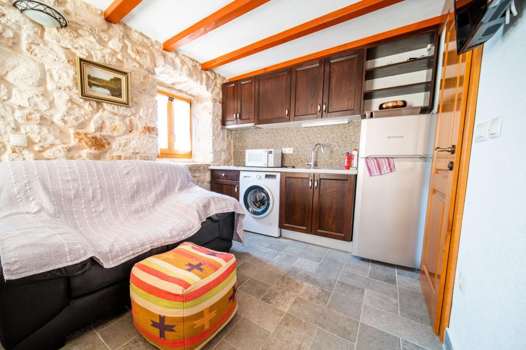 Dva nově zrekonstruované apartmány ve středomořském kamenném domě v centru okouzlující Rogoznice v srdci Dalmácie, na poloostrově. Pouhých 50 m od moře a nábřeží. Pro hosty, kteří chtějí zažít dovolenou v tradičním středomořském kamenném domě v blízkosti všech služeb, které Rogoznica nabízí. Velká terasa s výhledem na moře.