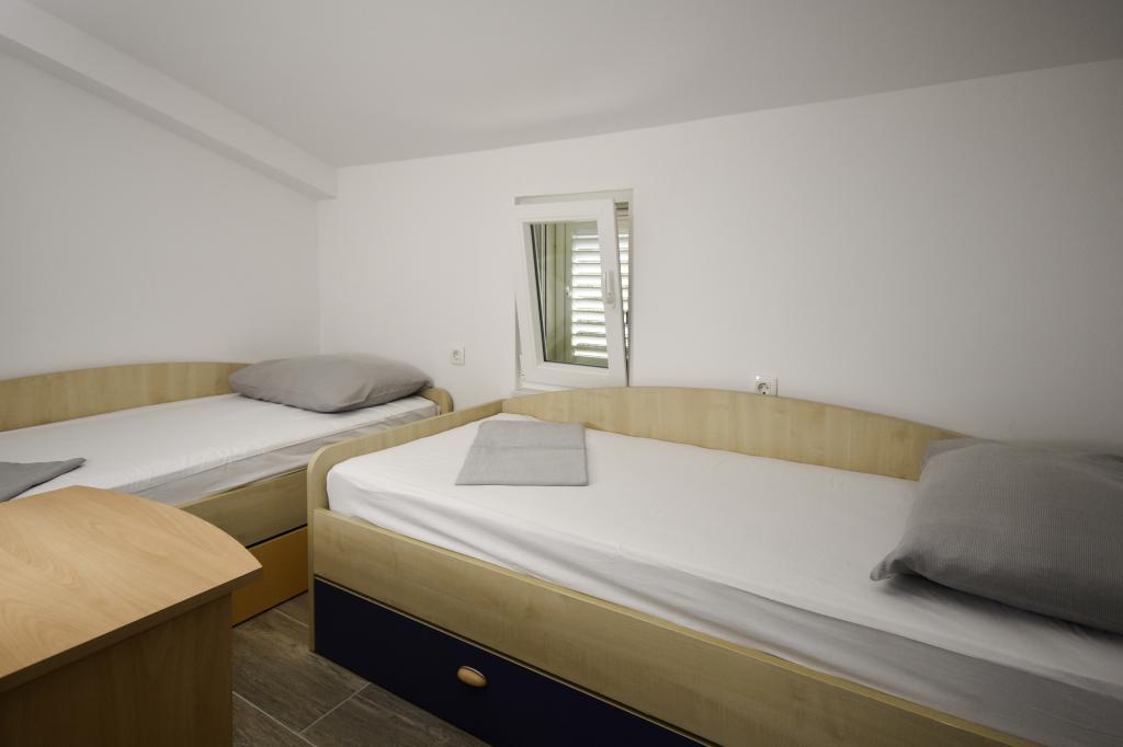 Apartmány Kanica relaxaci se nachází v domě, který se skládá z přízemí a prvním patře. Aprtman A1 se nachází v přízemí s terasou a apartmán A2 se nachází v prvním patře s dlouhým balkonem. Apartmány se nacházejí v části Kanica, malé místo s křišťálově čisté vody a malé skalnaté pláže. Kanica je malé místo idalno užít letní kouzlo slunce a moře. Kanica pro hosty, kteří hledají něco více aktivní dovolenou nabízí potápění, rybolov, vodní lyžování v zátoce si můžete pronajmout šlapadla a kajaky, a výlety lodí. Toto místo je daleko od Trogir 25 km a nachází se na půli cesty mezi Splitem a Šibenik (50 km).