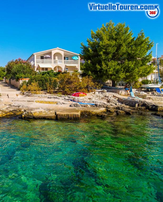 Unikněte stresu a davům.. Přijďte si odpočinout! Komfortní, velké apartmány se dvěma ložnicemi, s luxusní terasou, nacházející se v první řadě u moře, pláž přímo před domem, krásný výhled na moře a svěží zahradu ze všech apartmánů.