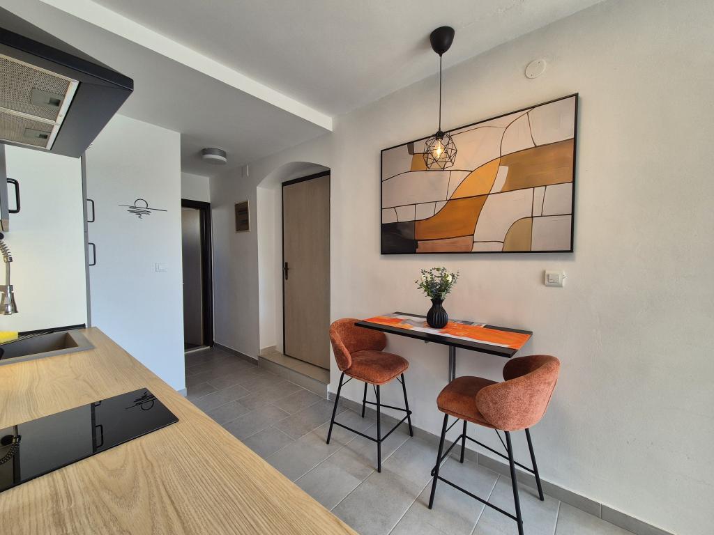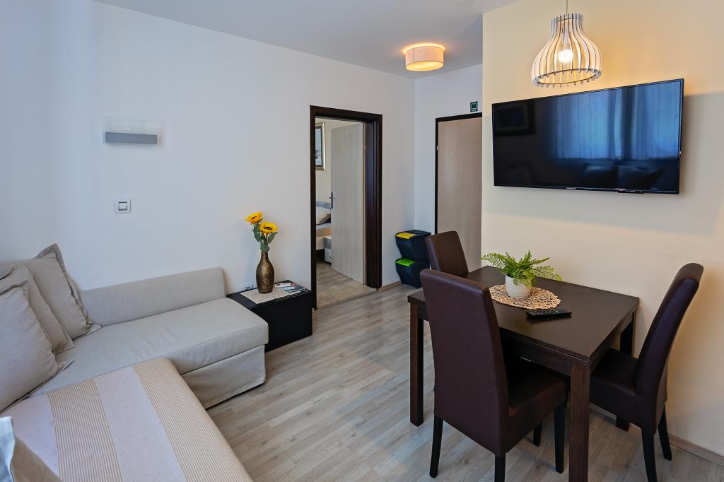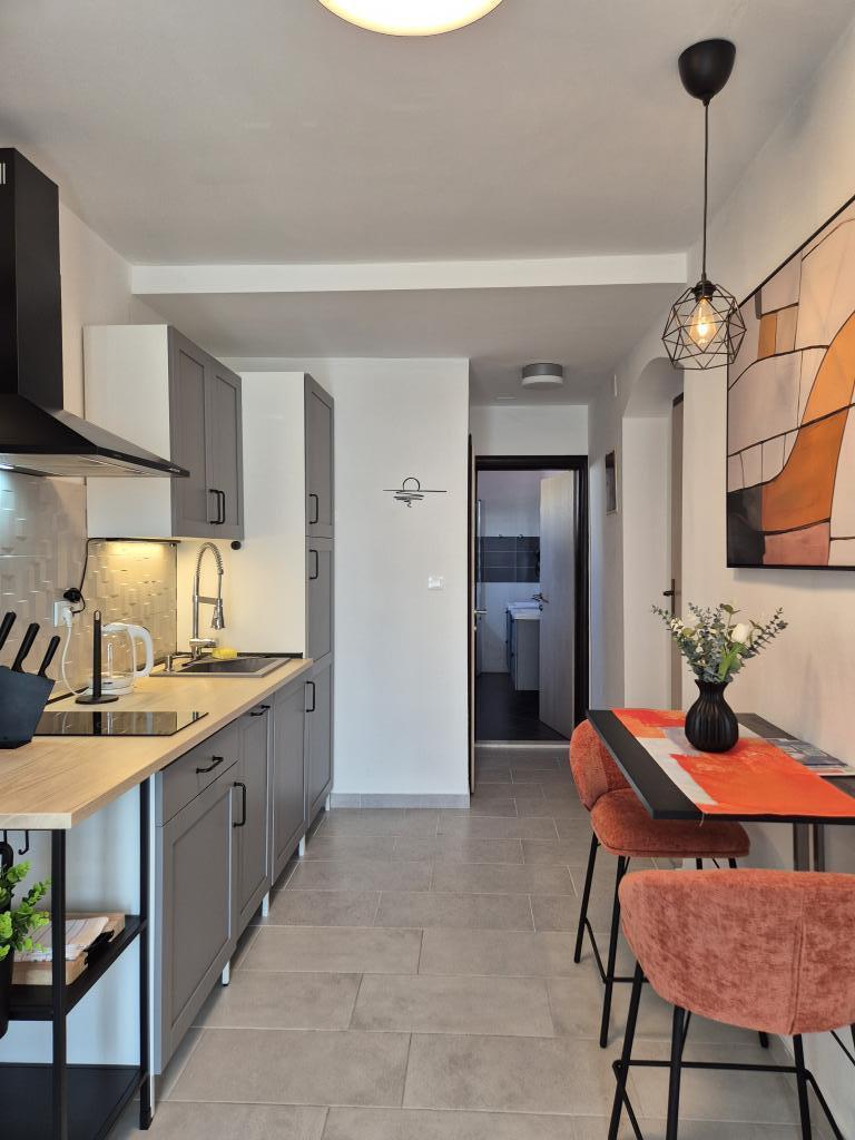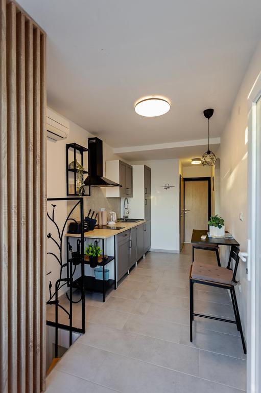 Apartmán Skorin se nachází v rodinném domě na poloostrově Rogoznica, který se nachází v centru města. V okruhu 300 m se nachází většina zařízení a služeb, které Rogoznica nabízí. V objektu jsou 4 apartmány, takže si každý může vybrat to, co mu nejlépe vyhovuje. Apartmány byly zrekonstruovány v letech 2017, 2022 a 2023. 50 m od objektu byl otevřen nový venkovní prostor pro cvičení.