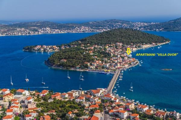 Dalmácie je známá svými starými kamennými domy, takže pokud jste někdy chtěli zůstat a cítit atmosféru, že poskytuje toto je správná příležitost pro vás. Villa Dvor je jedinečnou příležitostí k dovolené v tradičním domě dalmatského kamene postaven před mnoha lety. Dům je po celkové rekonstrukci 2014, a obsahuje tři stejné byty uspořádané do tří podlaží s vchodem z vnitřního schodiště. Každý apartmán má překrásný výhled na moře, které je jen deset metrů od hotelu. Dům se nachází v centru letoviska Rogoznica, na nábřeží, u moře. Všechny základní občanská vybavenost je na dosah ruky: restaurace, kavárna a obchody se nacházejí až 50 metrů ... Vítejte!