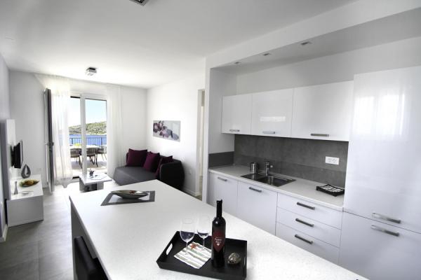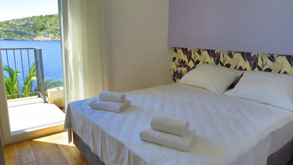 Levandule Apartmány se nachází v klidné a krásné zátoce Stivašnica do 10 metrů od moře. Rarita Všechny apartmány mají terasu, která nabízí panoramatický výhled na záliv Stivašnica, moře a přírody. Kamenné a štěrk apartmány přímo na pláži je obklopen palmami a středomořské rostliny vytváří příjemnou a uvolněnou atmosféru. Apartmány jsou nové a luxusně zařízený se samostatným vchodem, dvě ložnice, koupelna, moderní kuchyň a obývací pokoj. Parkoviště pro osobní auta a kotvištěm pro člun.