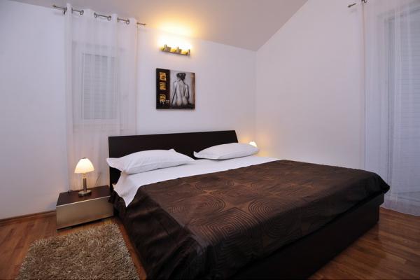 Kompletně moderní a luxusně vybavené apartmány, které jsou zařazeny do kategorie 4 v klidné části Zečeva Rogoznica pro ty, kteří chtějí klidnou dovolenou. Nedaleko se nachází lázeňské centrum, restaurace a bar. Luxusní apartmány se nacházejí 60 m od pláže, která je částečně štěrková a částečně dlážděná charakteristickým benkovacským kamenem. Apartmány se skládají ze 2 ložnic s manželskými postelemi a velkými šatnami, 2 koupelnami s pračkou, plně vybavenou kuchyní s myčkou na nádobí, mikrovlnnou troubou A (b) nebo troubou A (a), lednicí a částečným mrazákem, jídelní stůl se 6 židlemi, rozkládací pohovka vhodná pro spaní pro dvě osoby, plazmová televize, terasa se stolem a 4 židlemi a nabízí nádherný výhled na moře, ostrovy a maják v dálce. Před Marínou je krásná velká zahrada s trávou, palmami, olivovníky ... a kolem domu je kamenná zahrada. Nabízíme našim hostům lehátka a slunečníky na pláži
