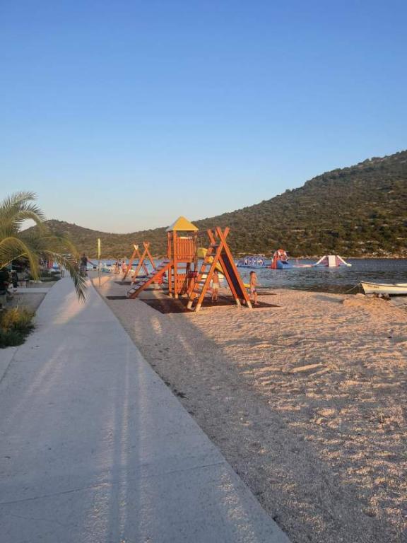 Tento krásný prázdninový dům Lucija se nachází pouhých 40 m od moře a může ubytovat až 10 osob. Dům se skládá ze dvou samostatných apartmánů, které jsou k dispozici pouze pro hosty. Dům je prostorný a má dobře vybavenou kuchyň, pohodlný obývací pokoj, 4 ložnice a 2 koupelny. Krásně upravený dvůr s grilem je ideální pro venkovní posezení. Rodiny s dětmi se navíc mohou těšit na dětské hřiště, jehož součástí je trampolína a stolní tenis, které zajistí nezapomenutelný zážitek pro celou rodinu.
