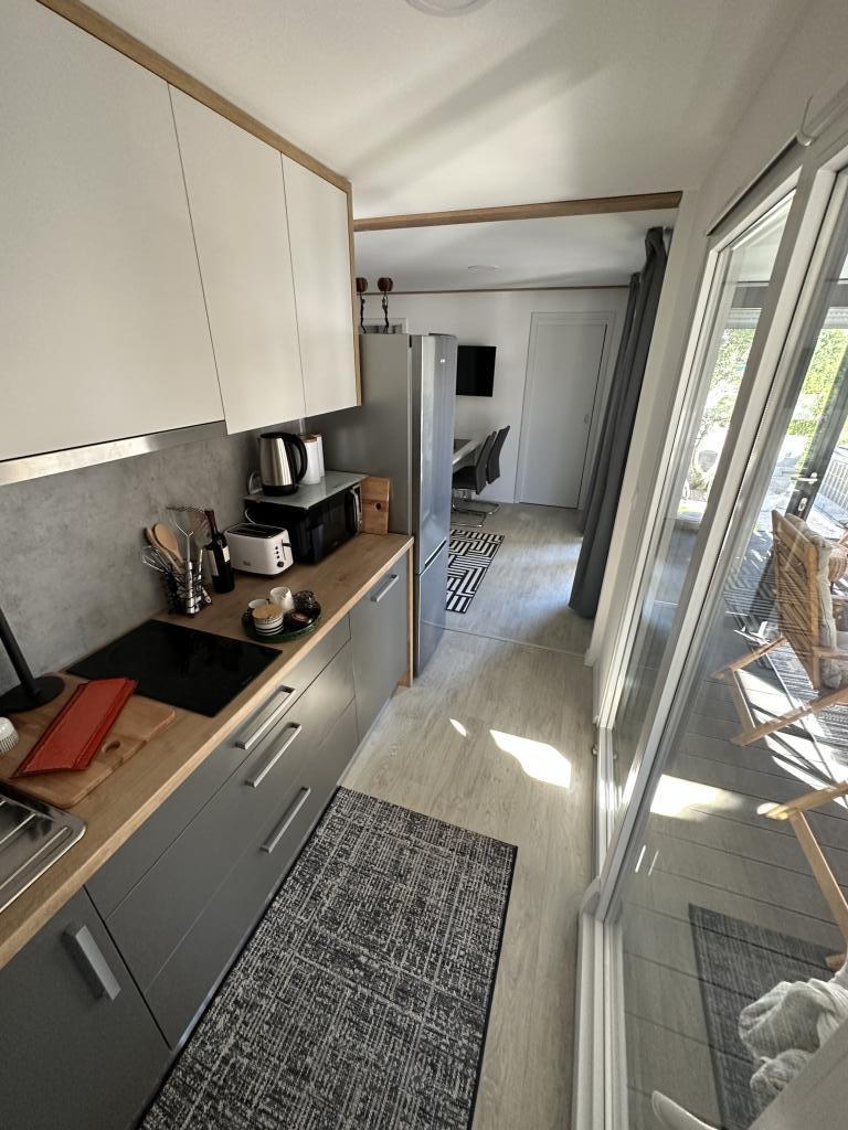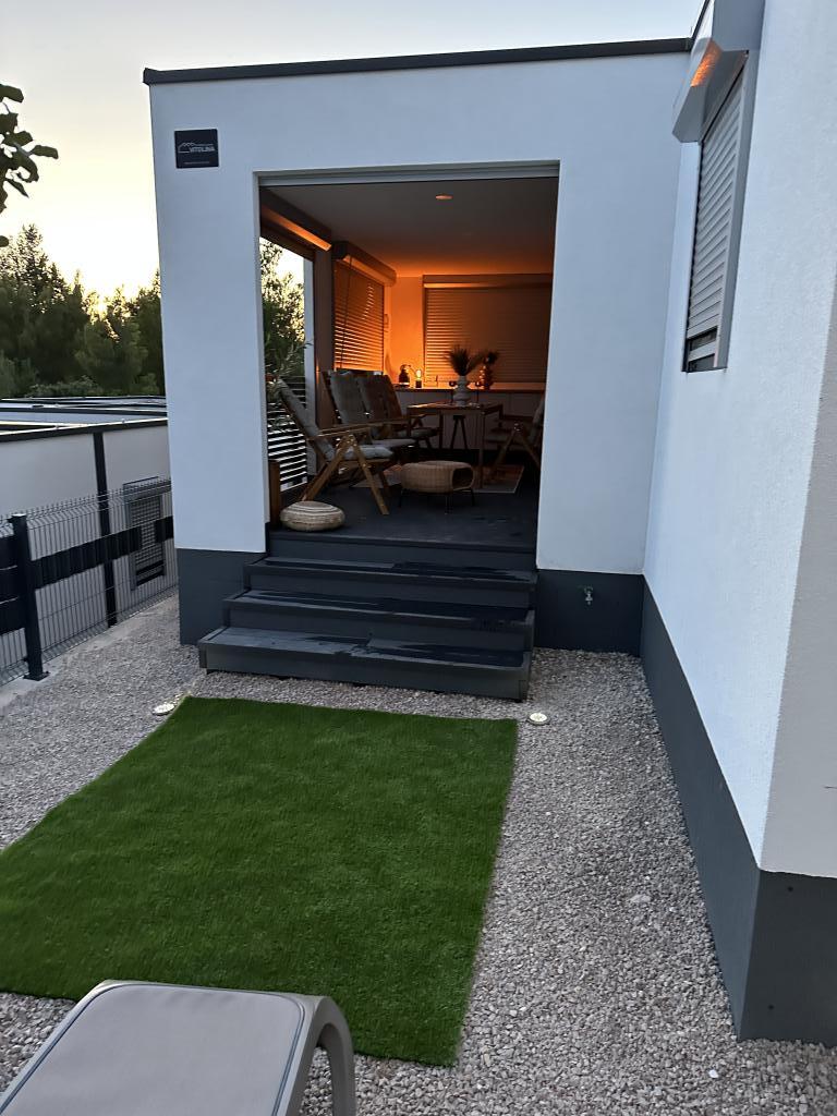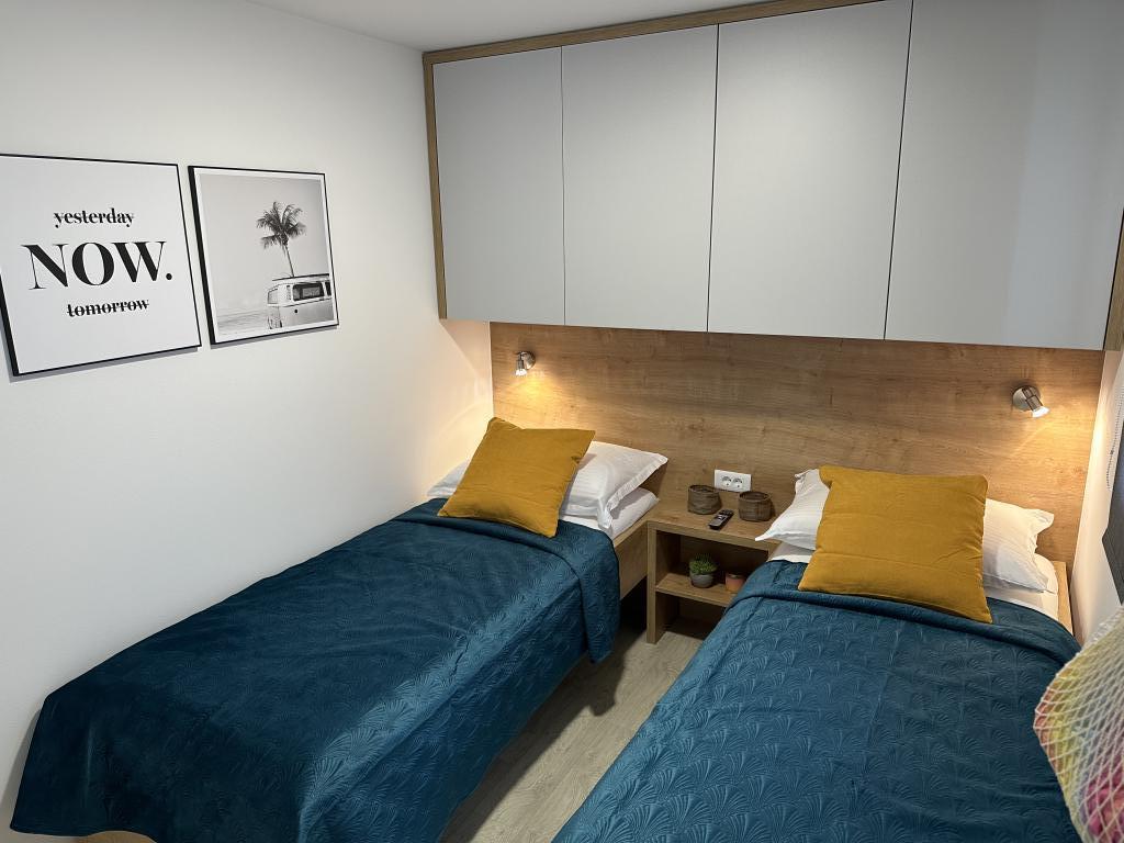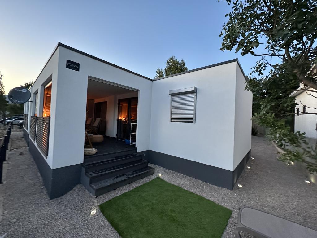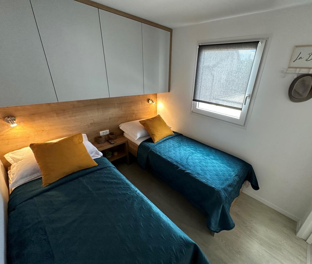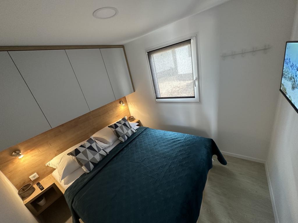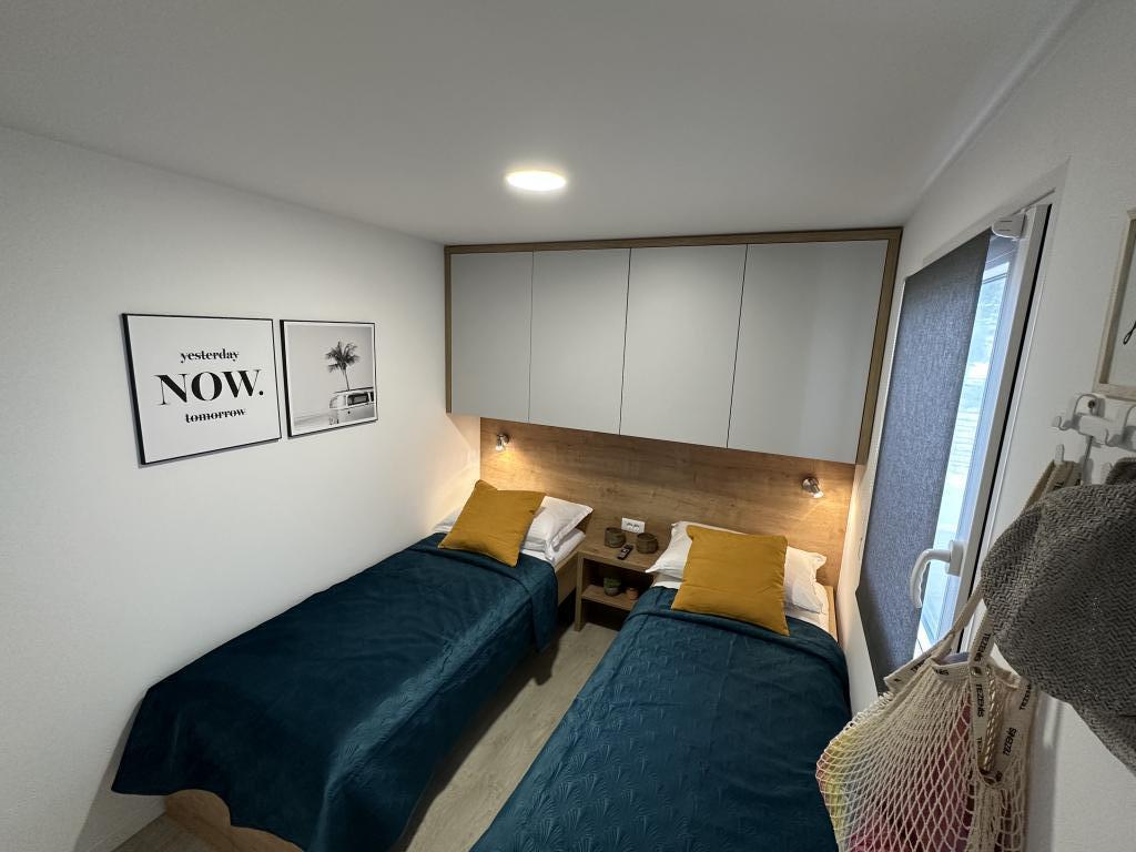 Mobilní dům Mare blu se nachází ve městě Rovanjska, v kempu Tamaris, 70 m od moře. Obsahuje 34m2 obytné plochy a 18m2 terasy. Tento dům o rozloze 54 m2 má skandinávský interiér s přírodními barvami a materiály, který nabízí harmonický a relaxační pobyt. V jedné ložnici je manželská postel (160 x 200 cm) a ve druhém pokoji jsou dvě lůžka (80 x 200 cm). Všechny pokoje mají televizi. Obývací pokoj je spojen s kuchyní a jídelnou. Velká kuchyně je otevřená a plně vybavená pro všechny vaše kuchařské potřeby - s kávovarem Krups, základním kořením (olej, olivový olej, sůl, pepř, ocet), špičkovým nádobím, spotřebiči jako toustovač a mixér a myčka. Náš mobilní dům je vybaven řadou moderních zařízení a funkcí, jako je SAT TV, klimatizace a bezdrátové připojení k internetu.