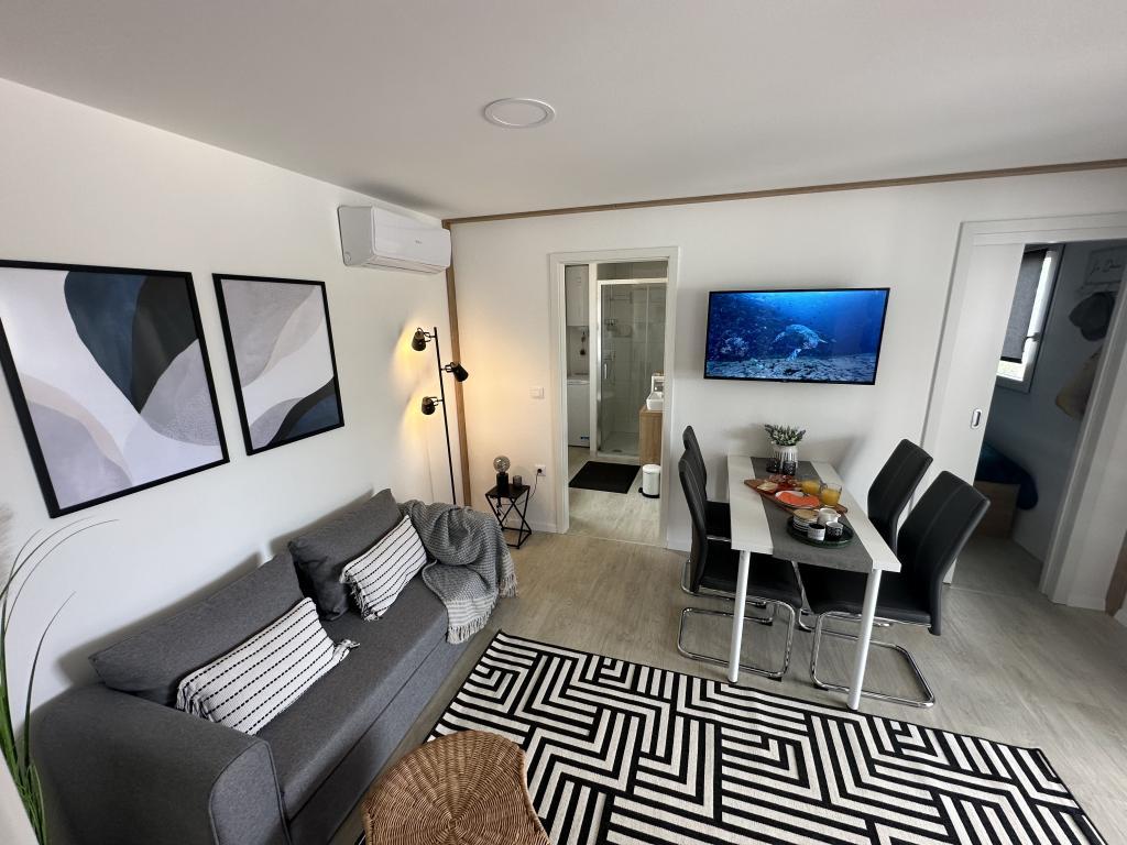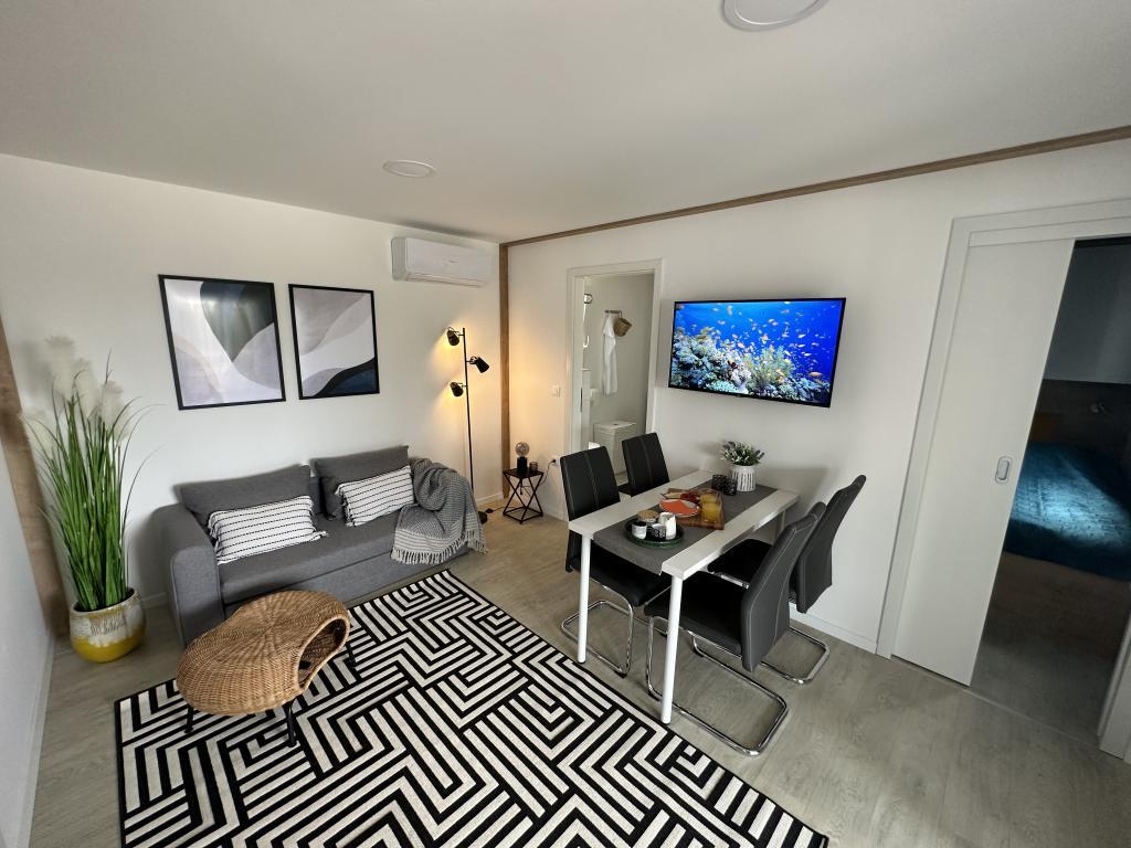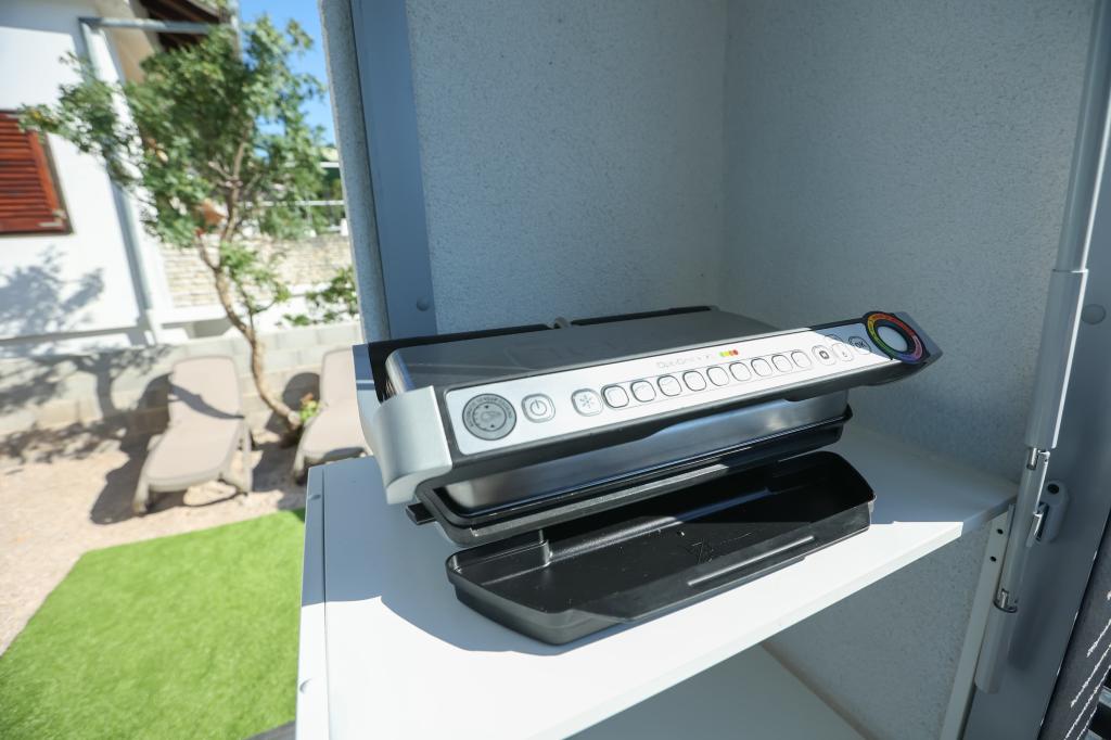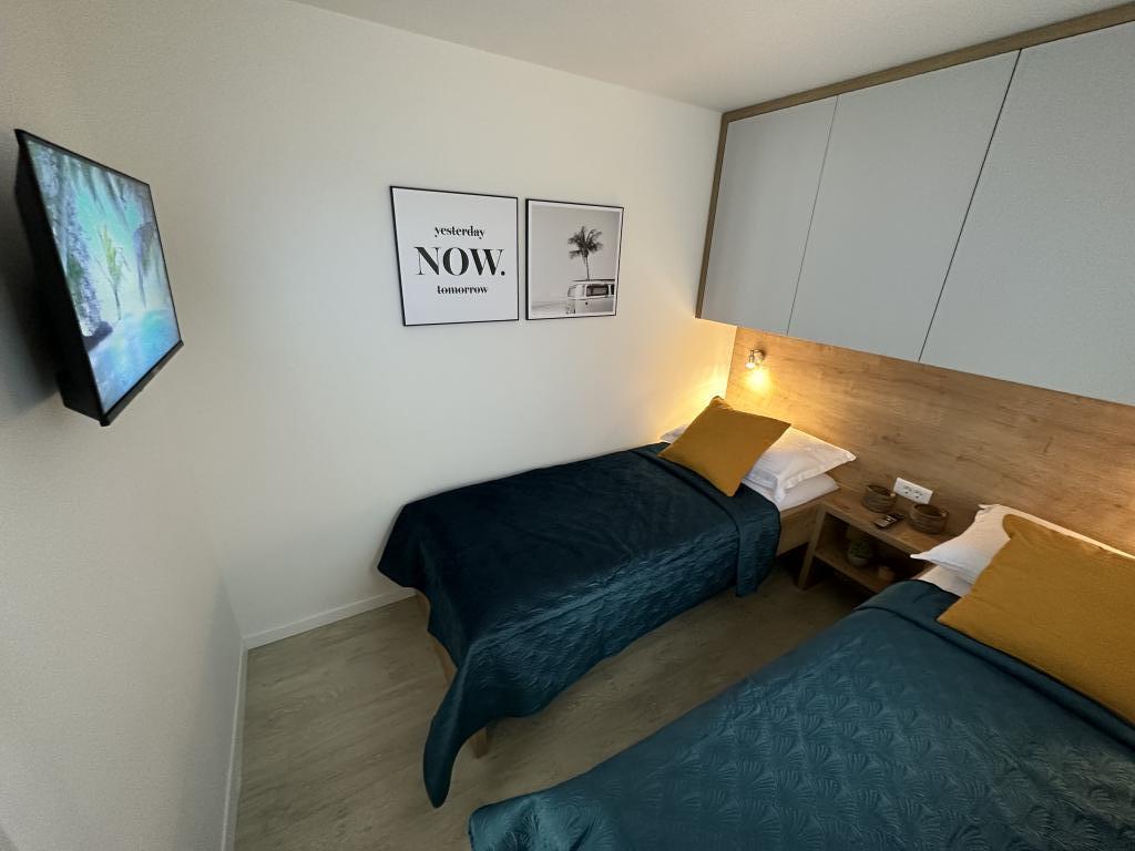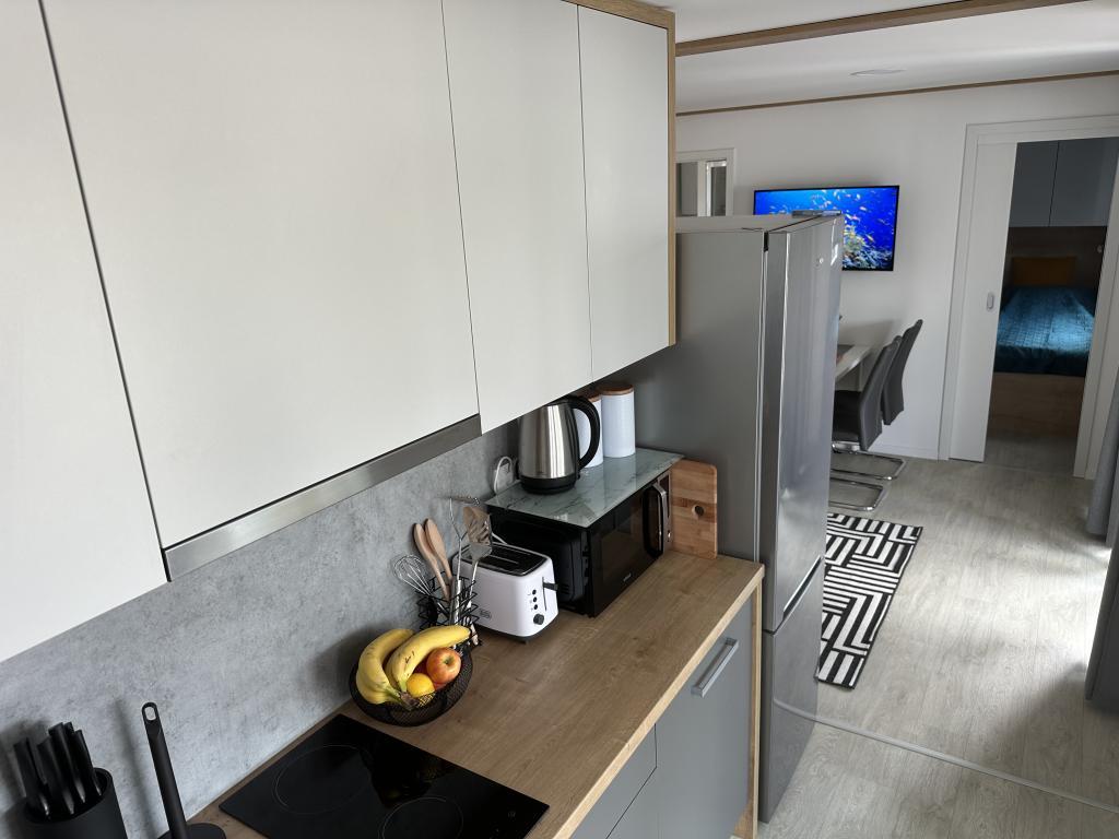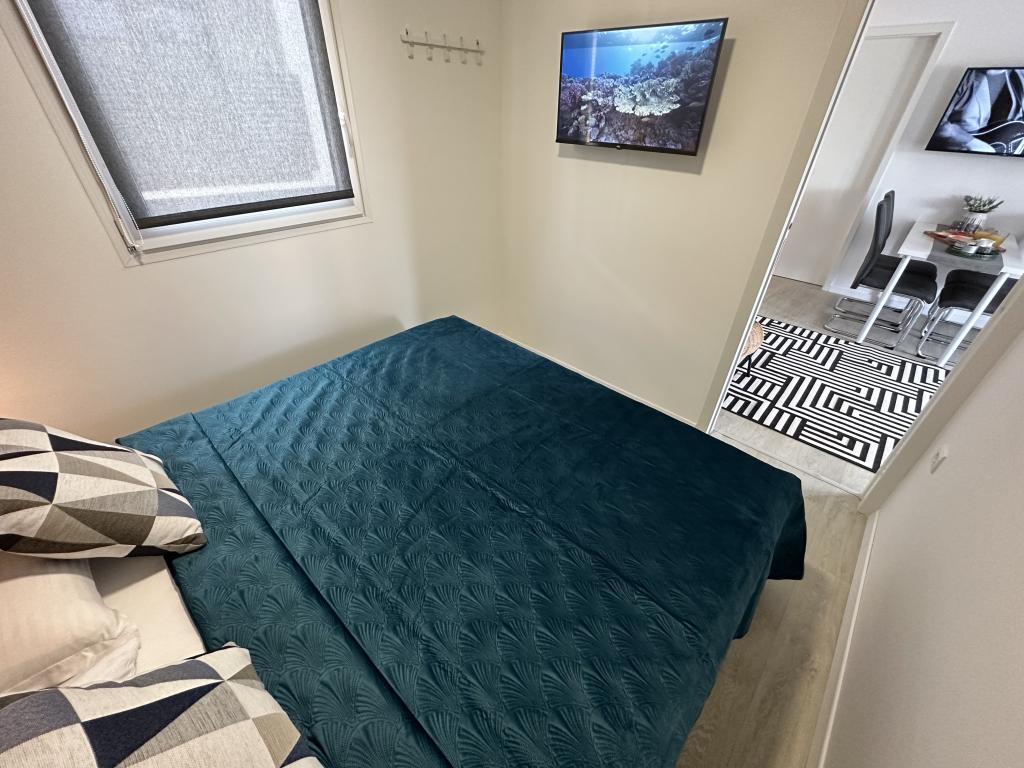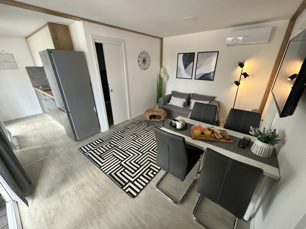 Mobilní dům Mare blu se nachází ve městě Rovanjska, v kempu Tamaris, 70 m od moře. Obsahuje 34m2 obytné plochy a 18m2 terasy. Tento dům o rozloze 54 m2 má skandinávský interiér s přírodními barvami a materiály, který nabízí harmonický a relaxační pobyt. V jedné ložnici je manželská postel (160 x 200 cm) a ve druhém pokoji jsou dvě lůžka (80 x 200 cm). Všechny pokoje mají televizi. Obývací pokoj je spojen s kuchyní a jídelnou. Velká kuchyně je otevřená a plně vybavená pro všechny vaše kuchařské potřeby - s kávovarem Krups, základním kořením (olej, olivový olej, sůl, pepř, ocet), špičkovým nádobím, spotřebiči jako toustovač a mixér a myčka. Náš mobilní dům je vybaven řadou moderních zařízení a funkcí, jako je SAT TV, klimatizace a bezdrátové připojení k internetu.