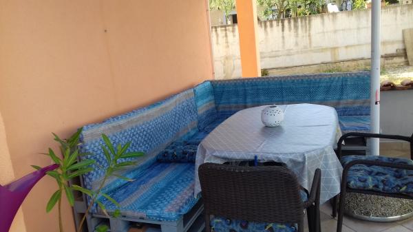 Nově zrekonstruované apartmány se nacházejí v prvním patře, v klidné oblasti, uprostřed zeleně, se nachází 10 minut chůze od centra města a 300 m od moře.