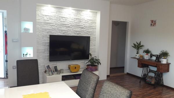Byt je velmi prostorný, moderní, čisté a pěkně zařízené. Kuchyně je opravdu vybaven všemi náležitostmi, kontejner je kvalitní a krásná. Pokoje jsou pohodlné, ve skříních, je spousta místa pro delší pobyt. Tam je stroj myčka a pračka. I v koupelně je krásná a rekonstrukcí. Byt má velkou terasu, kde v důsledku chladnějšího počasí, jsme se sedět v létě je určitě skvělé. Dům se nachází na okraji obce, na konci slepé uličky, je úplné ticho v noci a nic neruší spánek. Parkovací místa je dost. Staré Město se dostanete příjemnou procházkou. Já bych především pochválit opravdu přátelské hostitele, pro které byl náš pobyt ještě příjemnější. Vřele doporučuji.