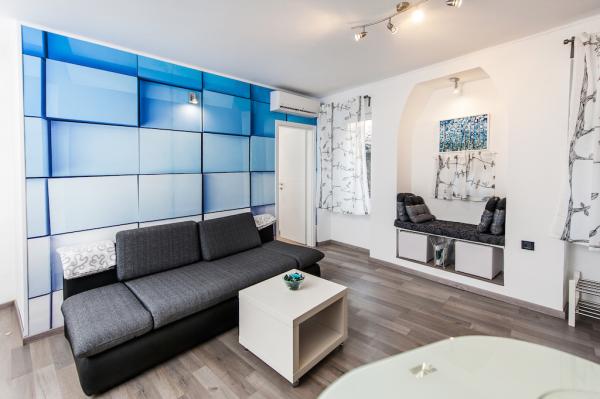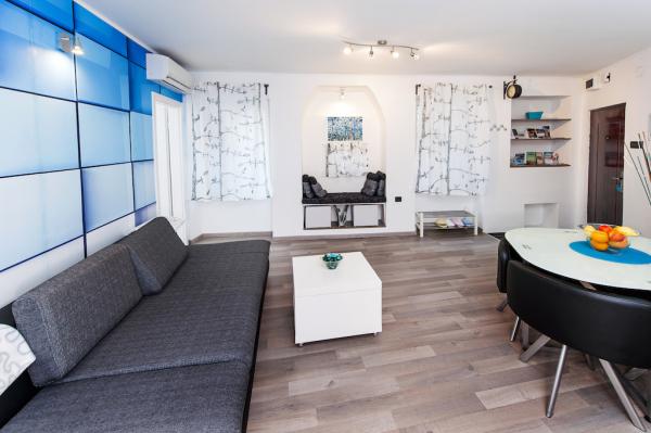 Kompletně zrekonstruovaný a moderně zařízené apartmány v centru města Rovinj, úzké ulice. Kostel sv Eufemie, restaurace, obchody, přístav, moře je jen pár kroků. Byt se skládá z ložnice s manželskou postelí, sociální zařízení, obývací pokoj s rozkládací pohovkou, moderní a funkční kuchyň. To je pračka, TV se satelitním příjmem, rádio / CD, klimatizace, myčka nádobí, rychlovarná konvice. Pokud se chcete cítit duch starého Rovinje a opravdu se s ním vím, je to pravý apartmán pro Vás.