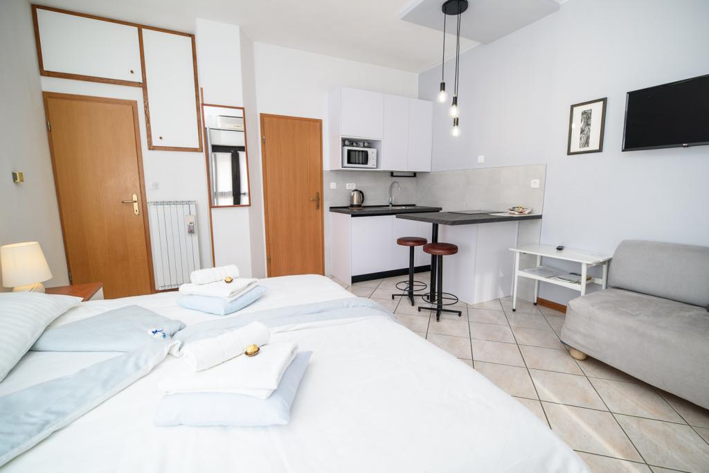 „POHOSTINNOST, ČISTOTA A SLUŽBY – DÁREK PRO VAŠI ZASLOUŽENOU ROČNÍ DOVOLENOU!“ Rodina Poropat vám z dlouholeté rodinné tradice nabízí pohostinnost v pohodlných apartmánech umístěných v klidné a slunné ulici, v ideální poloze díky blízkosti pláže a centrum města. VÝHODY NAŠICH APARTMÁNŮ: 1. OPTIMÁLNÍ POMĚR mezi cenou služeb, kvalitou ubytování, vybavením a lokalitou / 2. LOKALITA: • tichá, široká ulice blízko centra města s parkováním zdarma, • do 300-600 m vše, co potřebujete pro své dovolená: - tržnice, restaurace, banka - centrum města - pláže, promenády, cyklostezky (Zlatni rt) - hotely Eden, Lone, Monte Mulini, Park... - kongresové centrum - ACI Marina - autobusové nádraží/stanice taxi - tenisové kurty , sportovní hala, hřiště na fotbal a házenou - zdravotní středisko (pohotovost), lékárna, zubaři - půjčovna aut/kol/moto/lodí