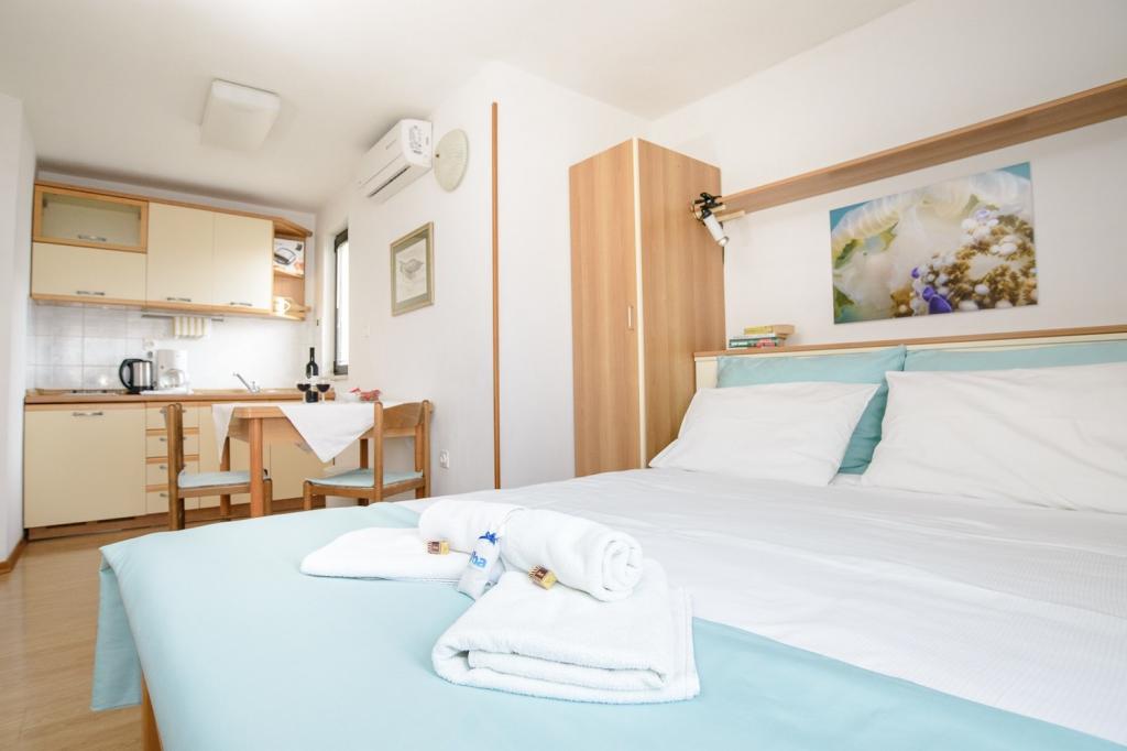 Strávili jsme týdenní rodinnou dovolenou v krásném bytě Ines. Byt je částečně pod zemí, takže v horkých dnech to uvnitř nebylo takové horko, i když mají funkční klimatizaci. Byt je přesně jako na obrázcích, s velkou zelenou terasou v částečném stínu, což bylo pro naše dítě velmi výhodné. Zpočátku nám nějaké hry na terase chyběly, ale brzy jsme zjistili, že jiných her je v okolí dost. Je to 10 - 15 minut chůze na pláž, ulice je klidná a majitel je velmi přátelský a spravedlivý. V kuchyni je také dostatek nádobí pro osobní vaření. V bytě jsme se cítili dobře a doporučujeme rodinám.