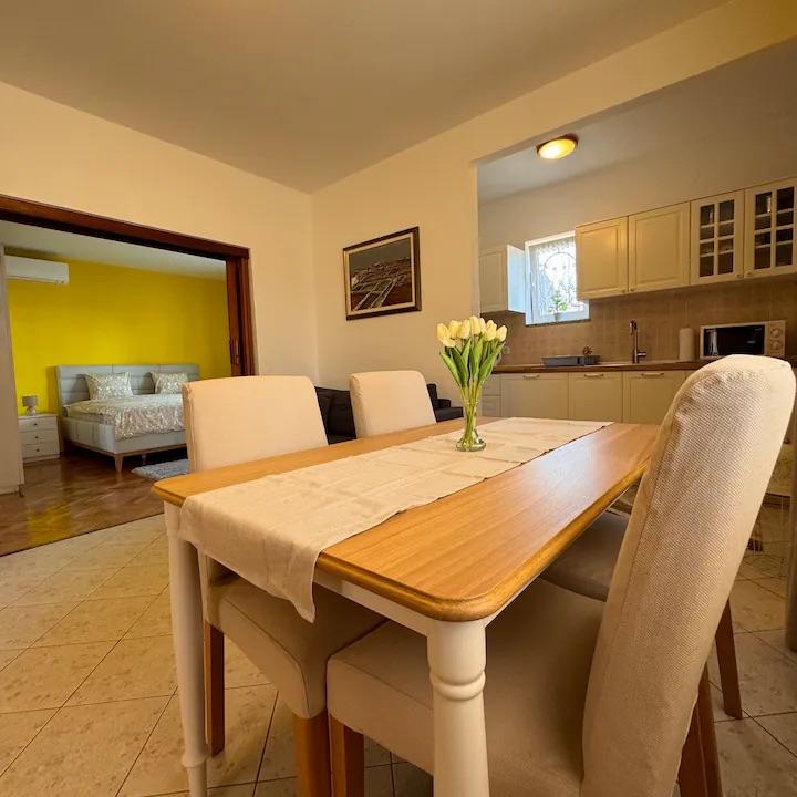 Apartmány jsou plně vybaveny - ložní prádlo, ručníky, použití klimatizace, WIFI, jedno parkovací místo na apartmán ve dvoře.