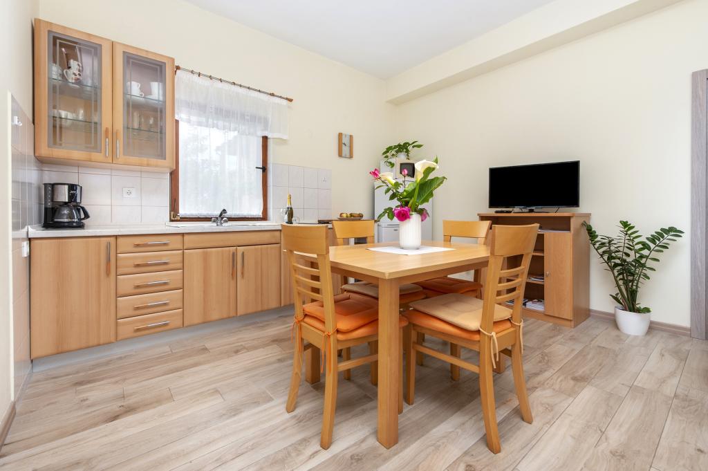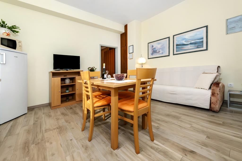 Dětská postýlka a jídelní židlička na vyžádání zdarma. Apartmány jsou plně vybavené, klimatizované. Cena zahrnuje ložní prádlo, ručníky k použití v apartmánu, používání klimatizace, WIFI, jedno parkovací místo na apartmán ve dvoře. Výměna ložního prádla a ručníků po domluvě. Pračka v apartmánech A2+1 SANDRA a A4+1 SANDRA Myčka nádobí v apartmánu A4+1 SANDRA