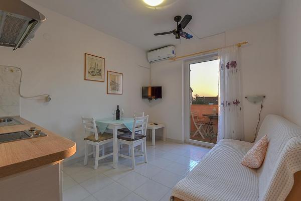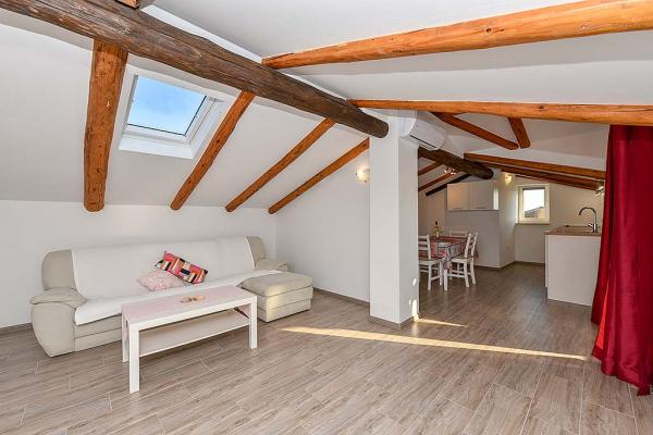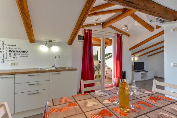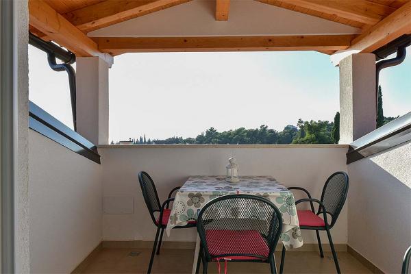 Nově zrekonstruované apartmány a studio apartmány v klidné vilové části města, jen několik minut chůze od pláže a 2 km od centra města, což vede k nábřežní promenádě. Apartmány jsou plně vybaveny a mají terasu, některé s výhledem na moře. Hosté mohou využívat zahradu a gril s velkým dřevěným stolem pro příjemné setkání, obklopen zelení. Domácí mazlíčci jsou vítáni, psi a je k dispozici a oplocený pozemek, kde se mohou volně pohybovat. Parkování je ve dvoře.