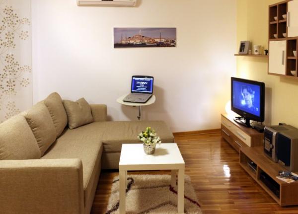 Apartmán "Sorriso" se nachází v centru Rovinje, s celkovou plochou 50 m2. Skládá se z velkého obývacího pokoje, plně vybavená kuchyň, ložnice a koupelna. Kapacita apartmánů pro 2 +2 osoby.