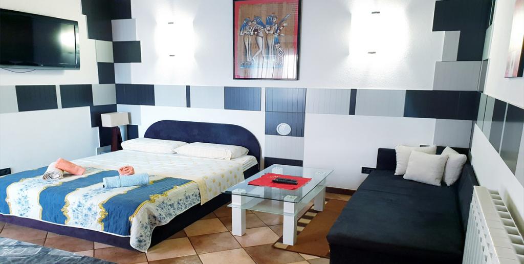 Apartmány s: LCD-TV na zdi, trezor v každém apartmánu, kola zdarma, pračka, video dohled na soukromém parkovišti, bezdrátový internet zdarma, dřevěný gril, plynový gril, dětské hřiště v zahradě pro nejmenší.
