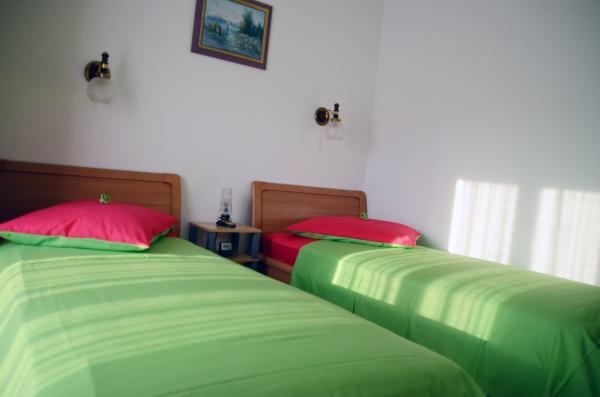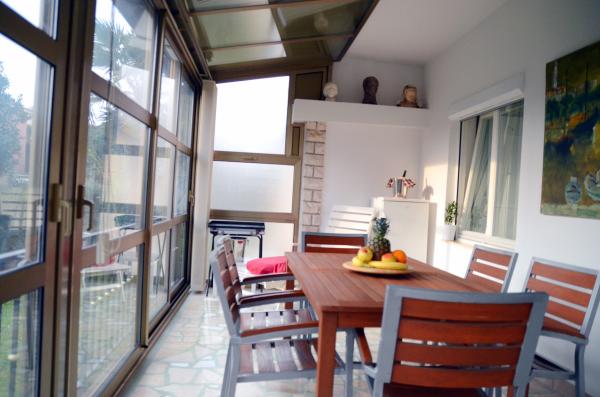 Kompletní a moderní rodinný dům v klidné oblasti, obklopené zelení, pouhých 500 m od moře a 900 m od centra města. Dům má terasu a zahradu. V přízemí je kuchyň, obývací pokoj, ložnice, koupelna, otevřené a uzavřené terasou. V patře jsou dvě ložnice s terasami, malý pokoj, koupelna a terasa na slunění. Na zahradě je tenatové a zahradní nábytek. je k dispozici bezplatné připojení k internetu v celém objektu. Domácí mazlíčci jsou vítáni, s předchozího upozornění.