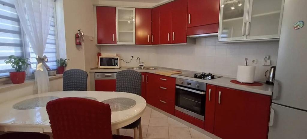 Apartmán doporučil, vše jak je popsáno (myčka, trouba, velká lednice, bidet). Ohromující výhled na moře z balkonu a kuchyně. V jedné ložnici je další balkon s výhledem na moře, a ve druhém okně s výhledem na krásné hory. Na pozemku je bazén s krásným výhledem na moře a hory. Na nedaleké pláži (v přízemí), je velmi intimní, tam nebylo moc lidí - malá pláž oblázky a mnoho míst, kamenitá / beton, a to, co je důležité temný. Velmi pěkný hostitel (Ivo vás a vaši rodinu pozdravit) - milý a ochotný. Jednoho dne nám on přinesl teplé sušenky s náplní.
