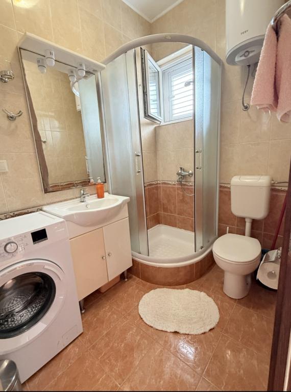 Byt 2+1 je výborný, udržovaný, čistý a uklizený. Kuchyně je vybavena naprosto vším, co potřebujete a ještě více. Koupelna je vybavena i pračkou, takže se cítíte jako doma. Blízkost pláže a výhled z balkonu jsou silné přednosti, ale co bych označil za nejsilnější, jsou hostitelé. Vřelí, otevření, vstřícní a nevtíraví, s nimi můžete zažít ono téměř zapomenuté teplo a lidskost. Přivítali nás drinkem, studeným občerstvením s domácími čerstvými fíky (stydím se, jak moc jsem je snědl) a přivítáním. V dnešní době, kdy je vše materiální a rychlé, v nás jejich pohostinnost opravdu zanechala nejsilnější dojem. Velký pozdrav báječné a veselé rodině Martićových.