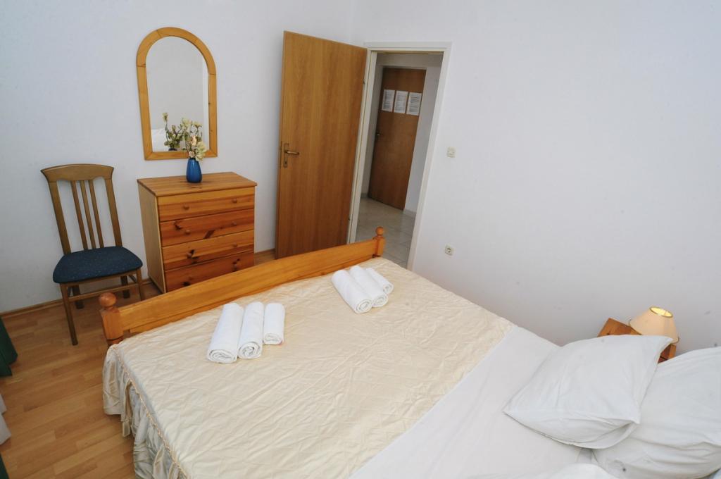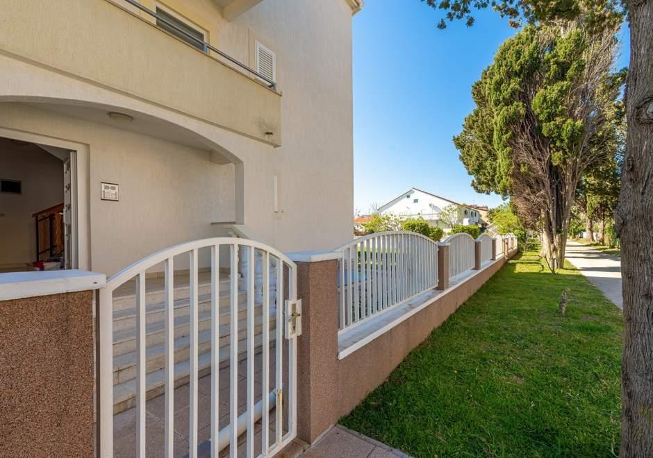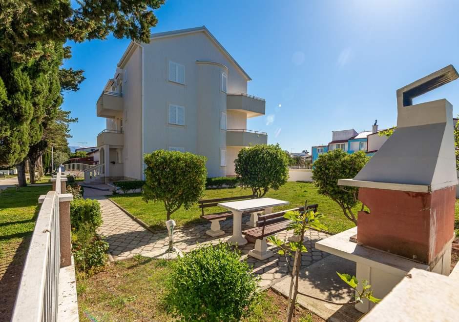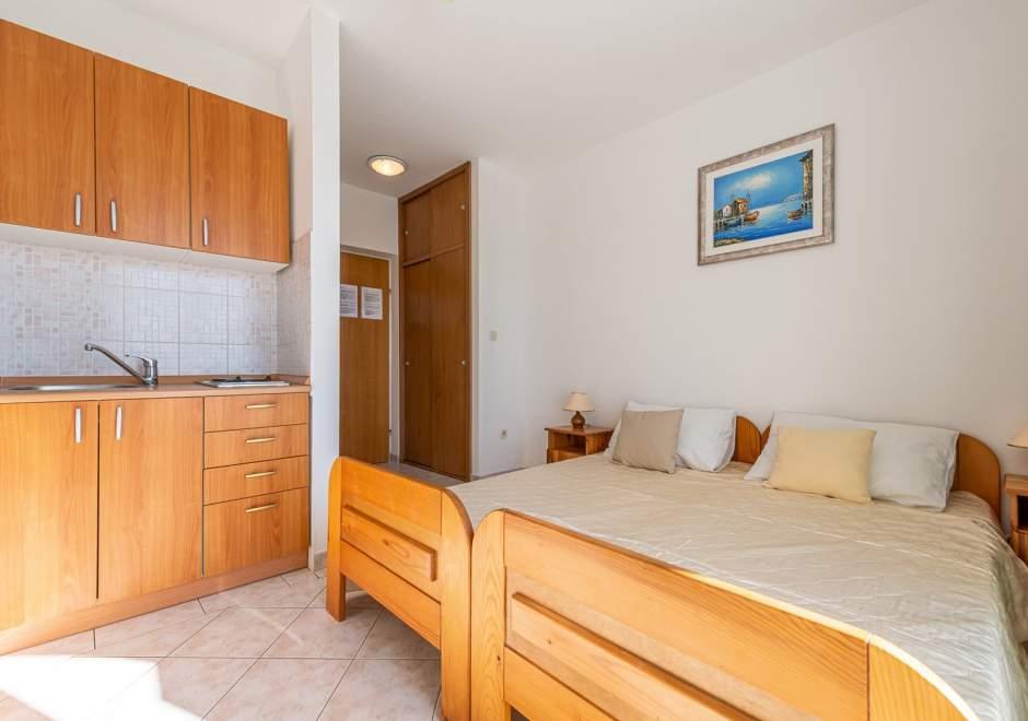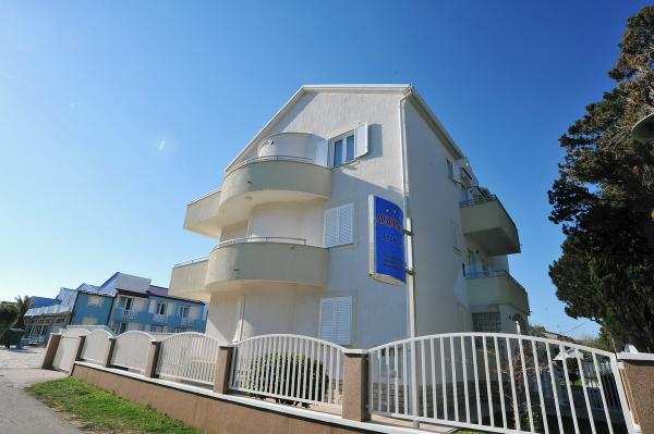 Moderně vybavený dům s 9 ubytovacími jednotkami: 6 apartmánů s jednou ložnicí a obývacím pokojem se dvěma přistýlkami, dvoumístným a třímístným sedadlem, dále vybavenou kuchyní, koupelnou se sprchovým koutem, velký balkon se stolem a židlemi. V chodbě je velká šatní skříň. 3 studia jsou určena pro dvě osoby, jsou také plně vybavená: koupelna se sprchovým koutem, velká šatní skříň, kuchyň a menší balkon se stolem a židlemi. Všechny apartmány mají klimatizaci Dům se nachází 3 minuty chůze od moře nebo 5 minut chůze od velké písečné pláže (Kraljičina plaža).