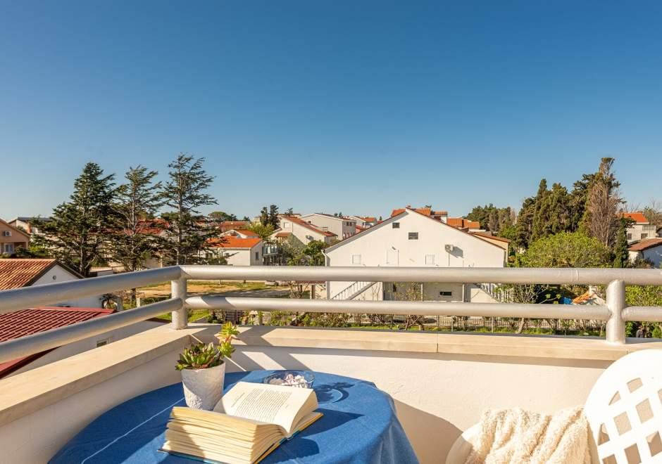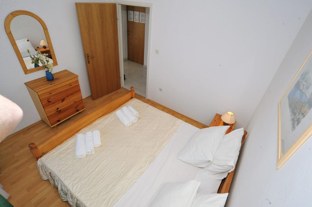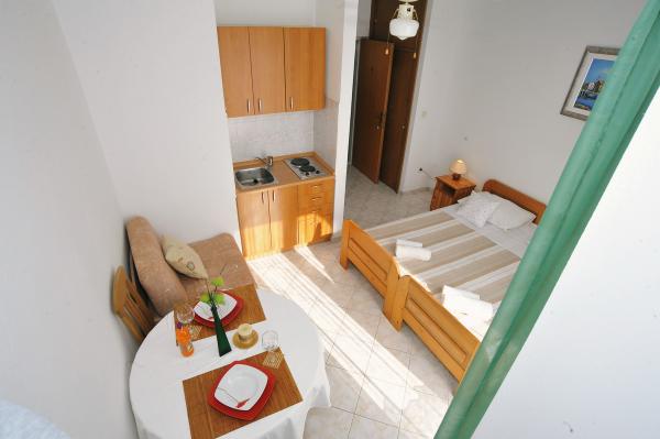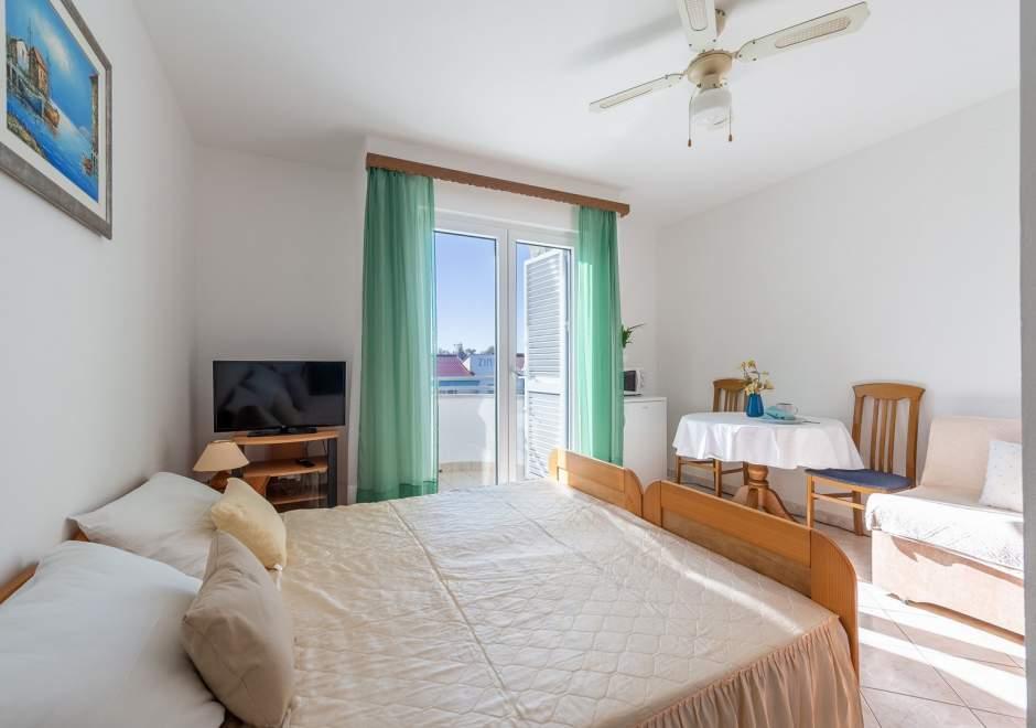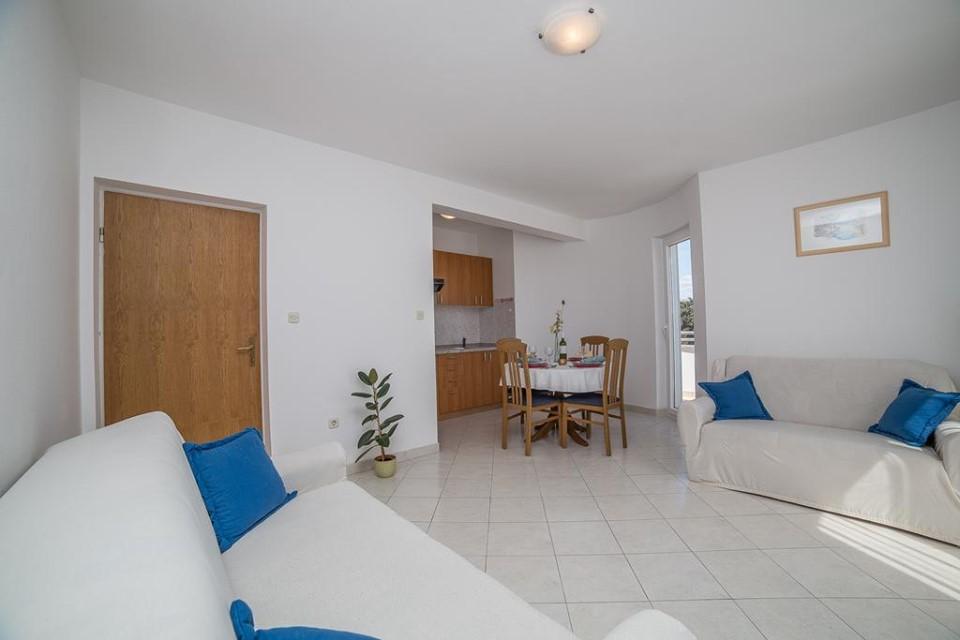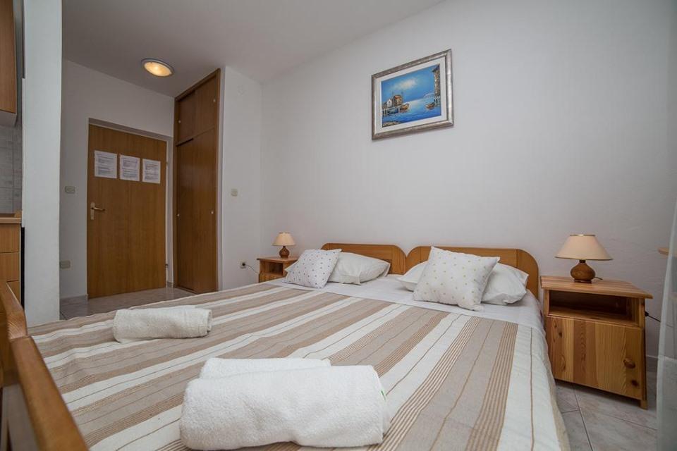 Moderně vybavený dům s 9 ubytovacími jednotkami: 6 apartmánů s jednou ložnicí a obývacím pokojem se dvěma přistýlkami, dvoumístným a třímístným sedadlem, dále vybavenou kuchyní, koupelnou se sprchovým koutem, velký balkon se stolem a židlemi. V chodbě je velká šatní skříň. 3 studia jsou určena pro dvě osoby, jsou také plně vybavená: koupelna se sprchovým koutem, velká šatní skříň, kuchyň a menší balkon se stolem a židlemi. Všechny apartmány mají klimatizaci Dům se nachází 3 minuty chůze od moře nebo 5 minut chůze od velké písečné pláže (Kraljičina plaža).