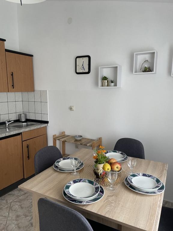 Byt je čistý, dobře vybavený s pěkným balkonem. Přátelští majitelé. Byli jsme přivítáni občerstvením (maso, sýry), vínem a rakijí. Majitelé velmi pěkné. Je velmi starostlivá, on srší humorem.