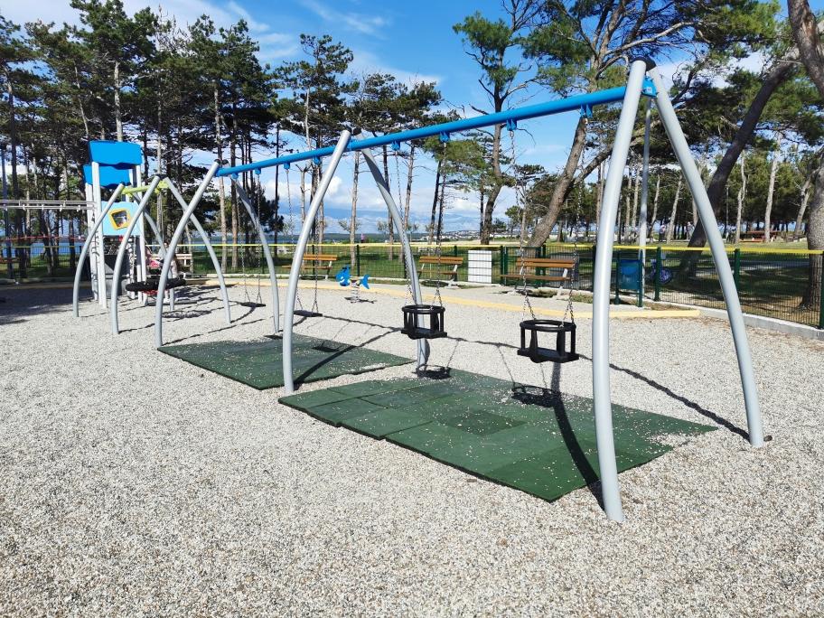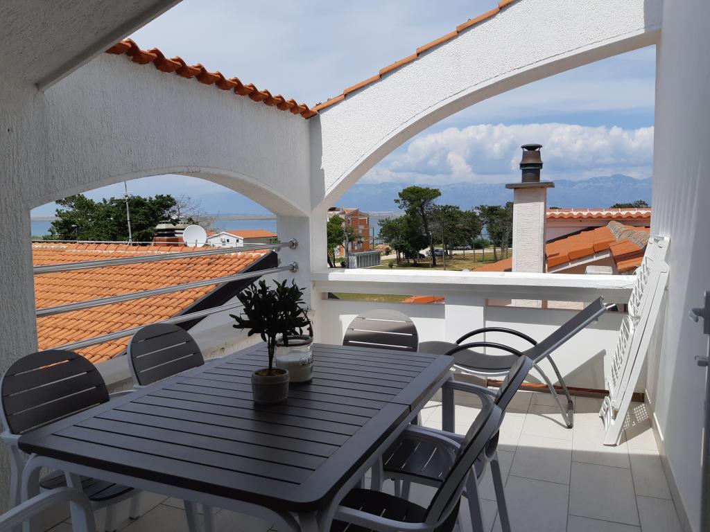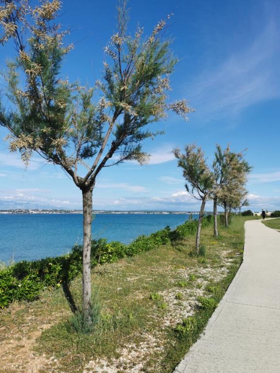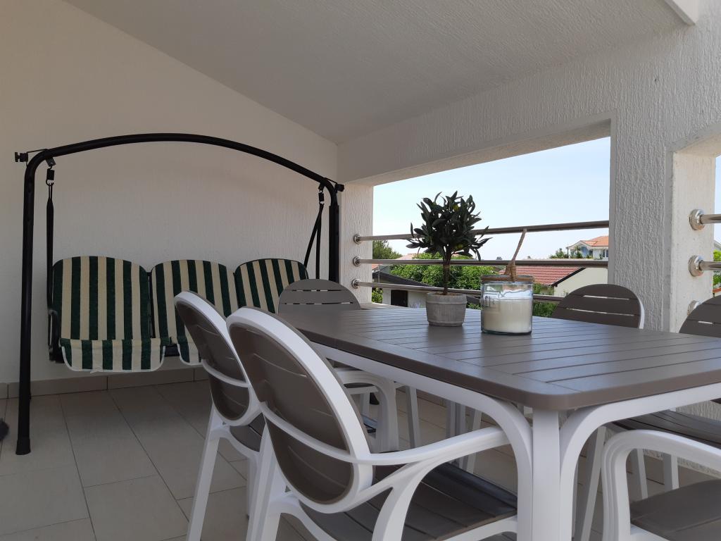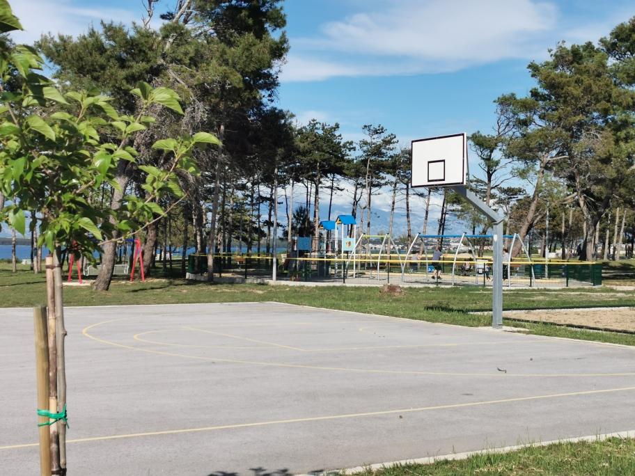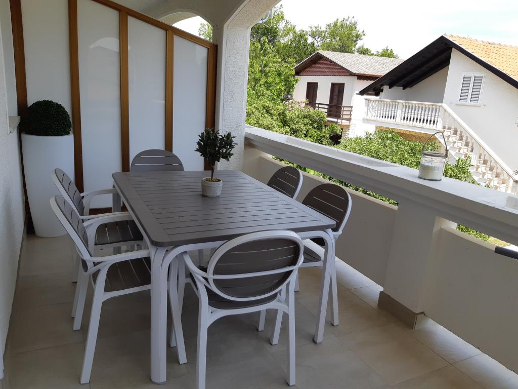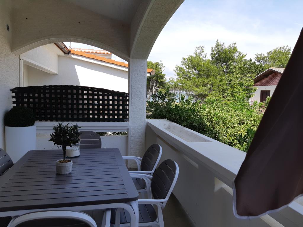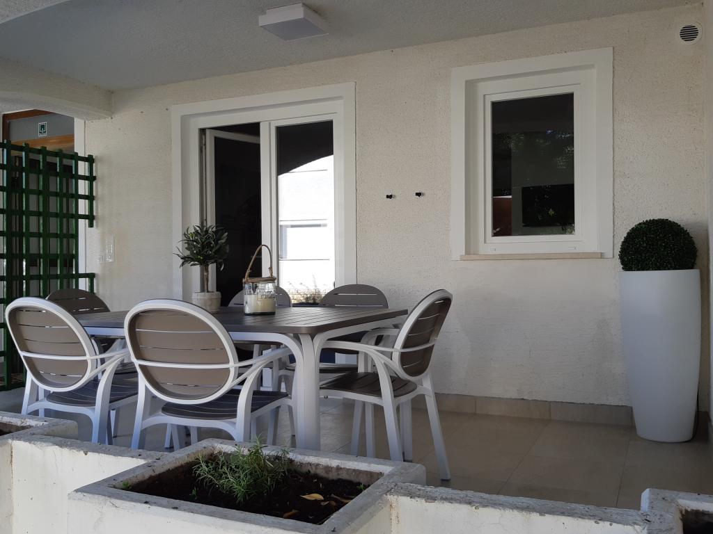 Nově a moderně zařízené apartmány. Poloha v osadě - první řada k moři. Apartmány se dvěma ložnicemi (jedna s manželskou postelí a druhá se dvěma samostatnými), kuchyní s jídelnou, krytou terasou, koupelnou s WC a sprchou. TV, varná konvice, mikrovlnná trouba, varná deska, trouba, lednice s malým mrazákem. Dvoumístné v jídelně (přistýlka pro 2 osoby) nebo v pokoji s manželskou postelí (přistýlka pro 1 osobu). Promenáda do centra obce - obchod, pekárna, prodejna ovoce, kavárna, zmrzlina - 2 min chůze. První restaurace 50 m před objektem je park a borový les se sportovním zázemím a oplocené nové dětské hřiště. Dvě kavárny v parku. Uzavřený dvůr našeho zařízení. Klimatizace, parkoviště kryté ochrannou sítí, Wi-fi, poplatky a taxy, venkovní sprcha a použití grilu v ceně.