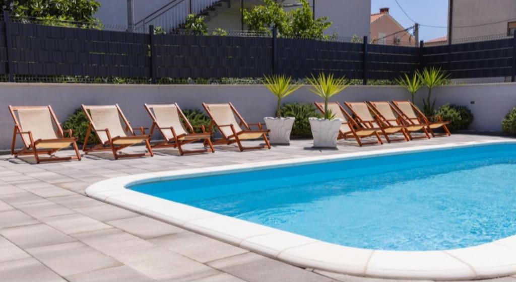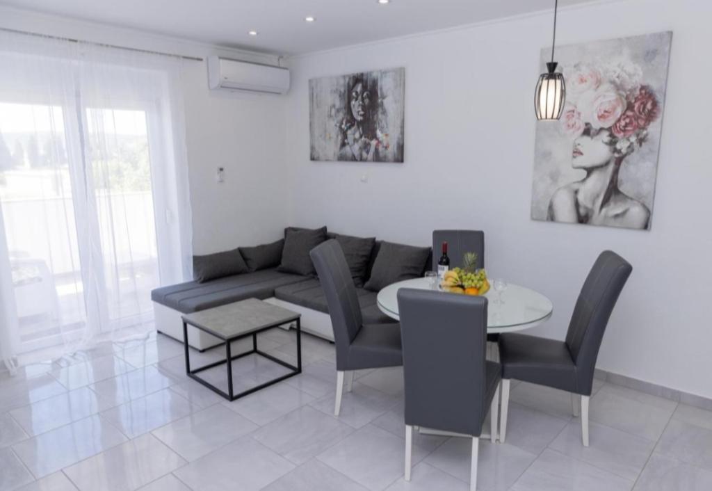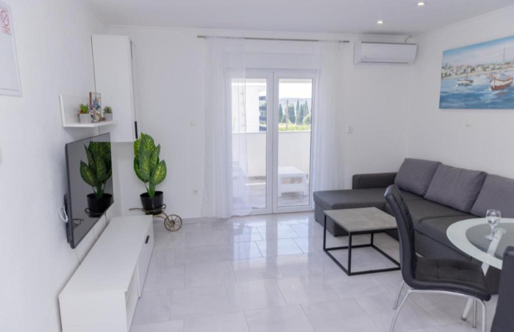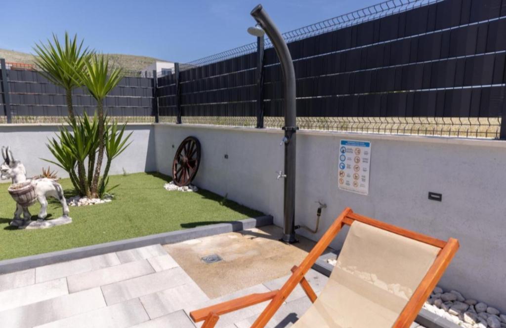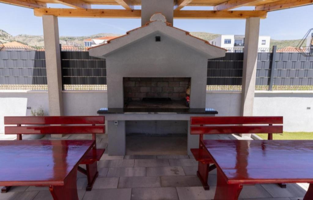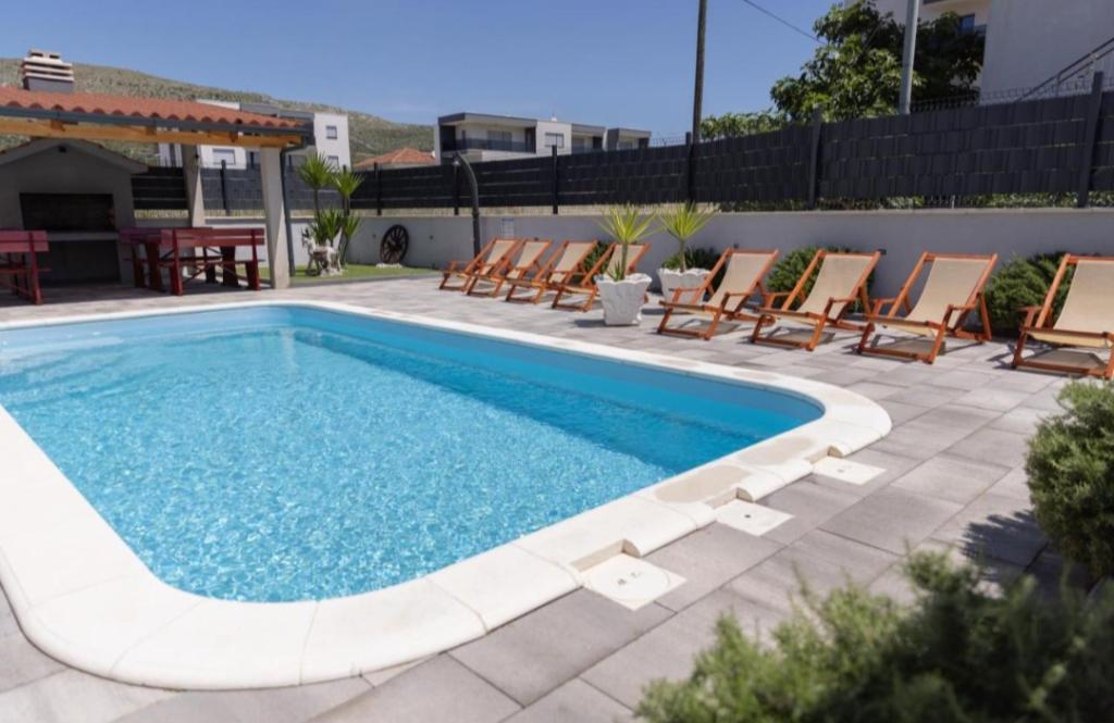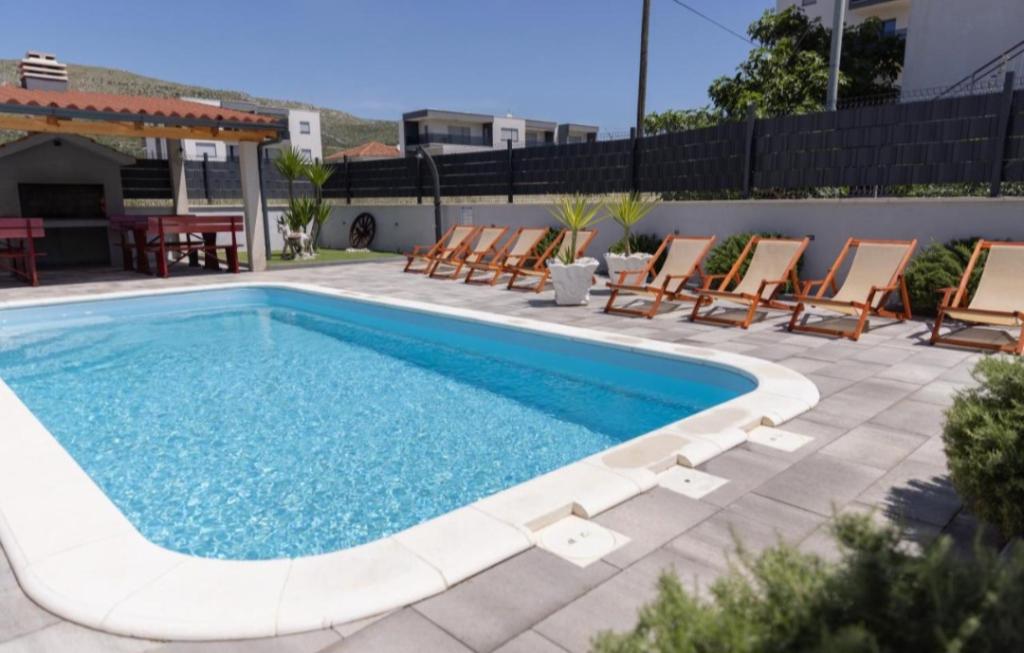 Nově zařízená vila v Seget Donji. Obsahuje 2 apartmány o velikosti 65 m2. Každý apartmán má jednu koupelnu, dvě ložnice s manželskou postelí. Každý apartmán má prostorný obývací pokoj. K vile náleží zahrada 168m2, bazén 30m2, venkovní gril, lehátka k odpočinku, ohnivé pólo branky k bazénu. Oba apartmány mají výhled na bazén a moře. Marina Baotić je vzdálená 100 metrů. Obchod Tommy je vzdálený 50 metrů, uvnitř kterého je prodejna čerstvého chleba, pečiva a čerstvého masa. Restaurace Barba je vzdálená 50 metrů, stejně jako Caffe Bar a lékárna. Vila se nachází na hranici Trogiru a Seget Donjeg.