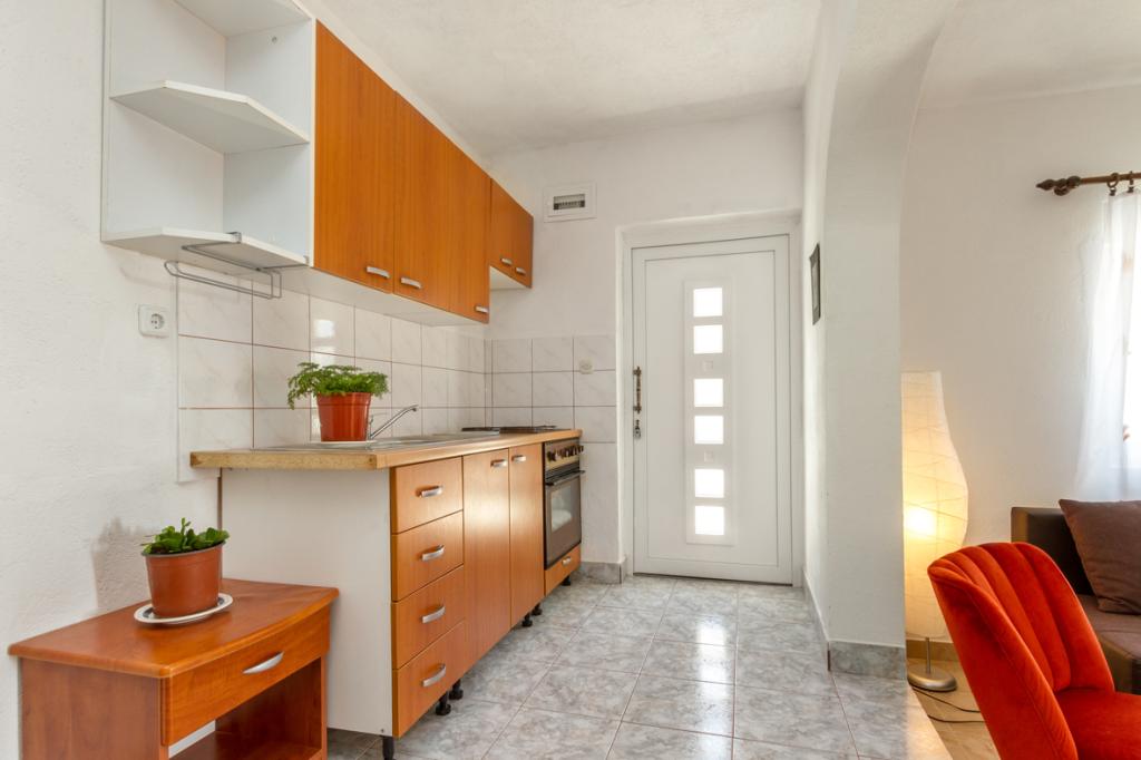Dům má 2 podlaží, obklopen zelení a zahradou, velká zahrada, klidné prostředí, cvrlikání ptáků, orientace na jih, slunná strana.Vzdálenost 50 m. Od moře pár minut chůze do centra, v blízkosti kempu, který má zdarma bazén k použití atd.