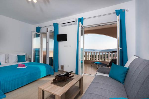 - Nový moderní a luxusně zařízené studio apartmány s čtyřhvězdičkového pohovkou a kuchyní, s výhledem na moře a ostrovy, Wi-Fi, klimatizace, parkovací místo ... bezpečí ... velkými balkony ... obklopen vlastním pozemkem se spoustou zeleně které jsou pěstovány domácí citróny, pomeranče, fíky ...