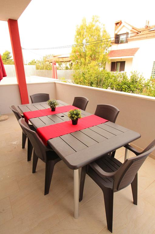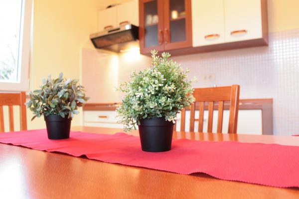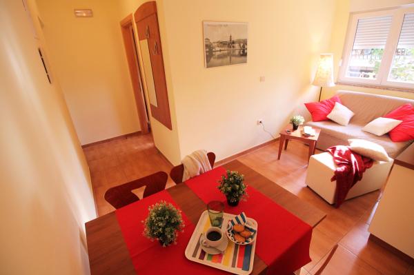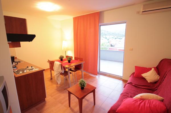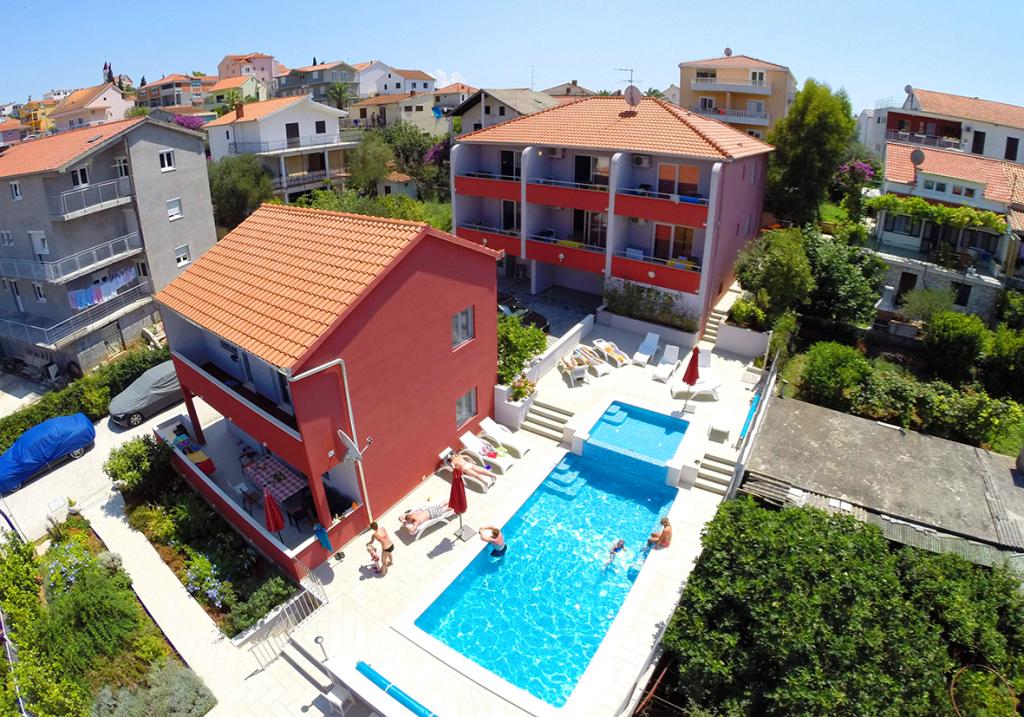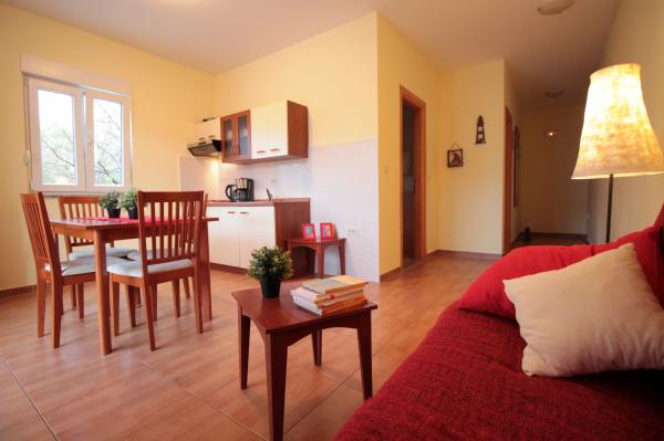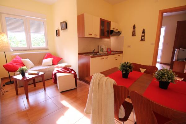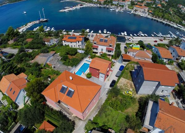 V domě je 6 apartmánů a jeden samostatně stojící dům pro 8 osob. Jsou zde dva se dvěma ložnicemi, kde každý pokoj má vlastní koupelnu. Dům má 4 pokoje. Další čtyři apartmány se skládají z jedné ložnice, dvou přistýlek v obývacím pokoji a jedné koupelny. Všech šest apartmánů má velké terasy (cca 12 m2) s výhledem na moře. Apartmány jsou asi 30 metrů od moře a nacházejí se v klidném prostředí. V ceně pobytu je neomezené využívání bazénu s vyhřívanou vodou, masérů a protiproudu umístěného ve dvoře, WIFI zdarma, využití grilu zdarma, parkování v areálu zdarma. Děti mají k dispozici dětský bazén a hřiště. Pláž, restaurace a obchod jsou 2-3 minuty chůze od apartmánu. Náš penzion je hostům k dispozici každý den.Po předchozím upozornění nabízíme bezplatné využití kotviště lodí v bezprostřední blízkosti apartmánu (40m).