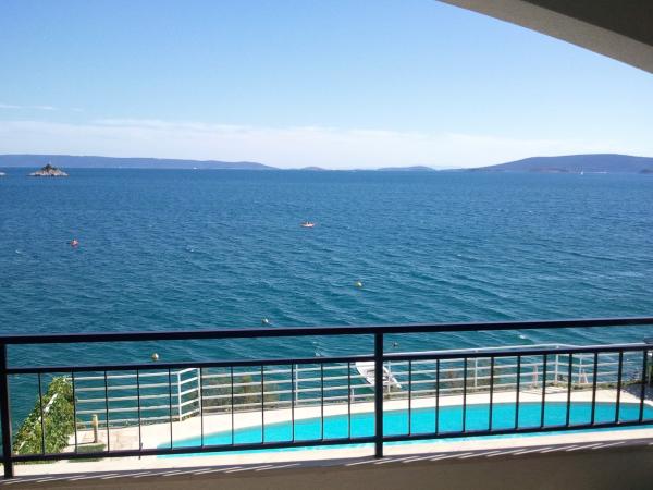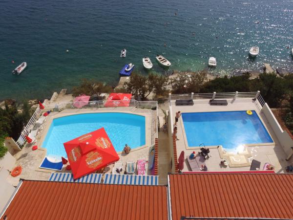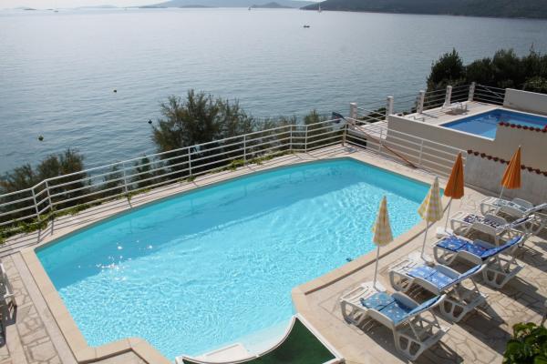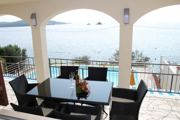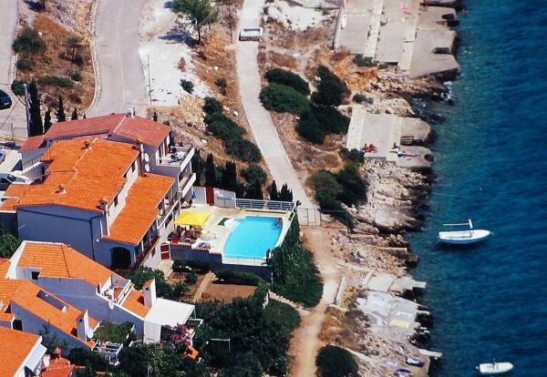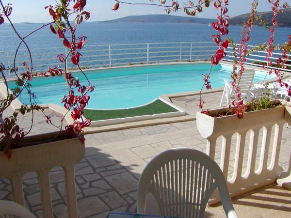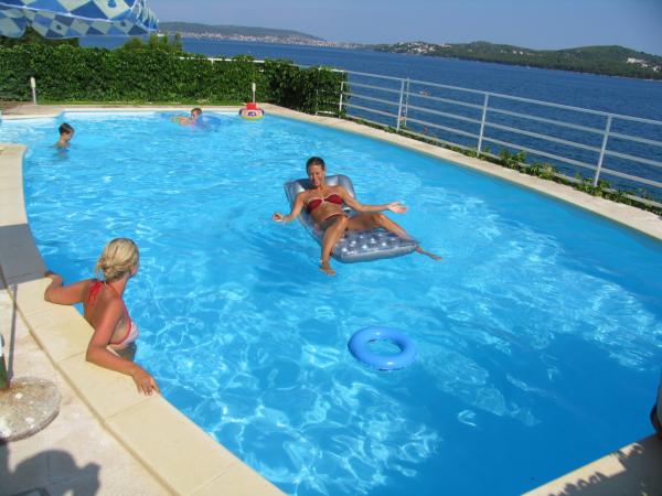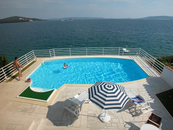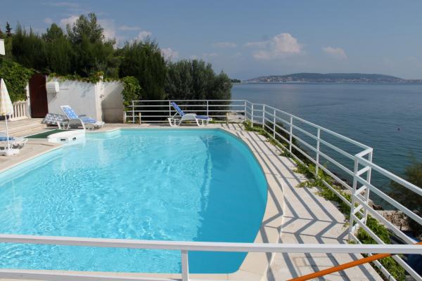Místo: na pláži u moře, asi 5 km od Trogiru, připojeného ke staré rybářské vesnice Seget, 8 km od letiště. Vybavení: Každý apartmán je klimatizován, má parkoviště, soukromou pláž u moře, venkovní vyhřívaný bazén (10 x 6 m) s reverzní koupání a jacuzzi, masáže a podvodní světla, prostornými terasami s výhledem na jih od 11 m2, jedna z nejkrásnějších pohledů bazén a moře v celém Jadranu, gril, Internet, kávovaru; pračka, možnost příchodu návštěvník na letiště, zapůjčení auta. Máme pláž kolem bazénu a na pláži u moře s lehátky v přední části ubytování. Také na pláži máme sprchu a schody pro přístup k moři.