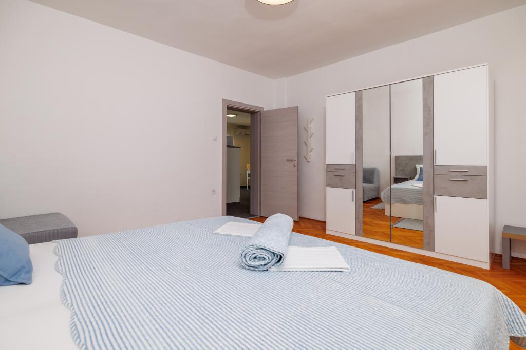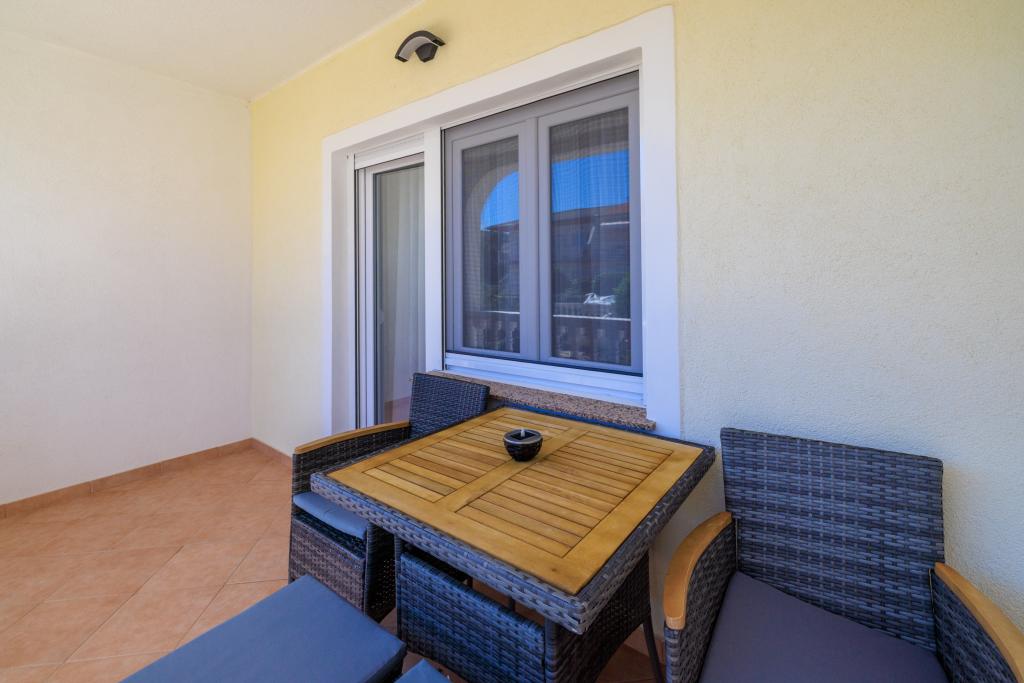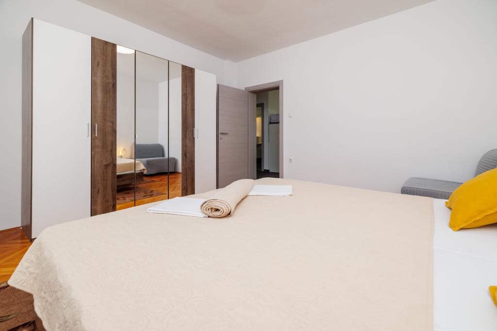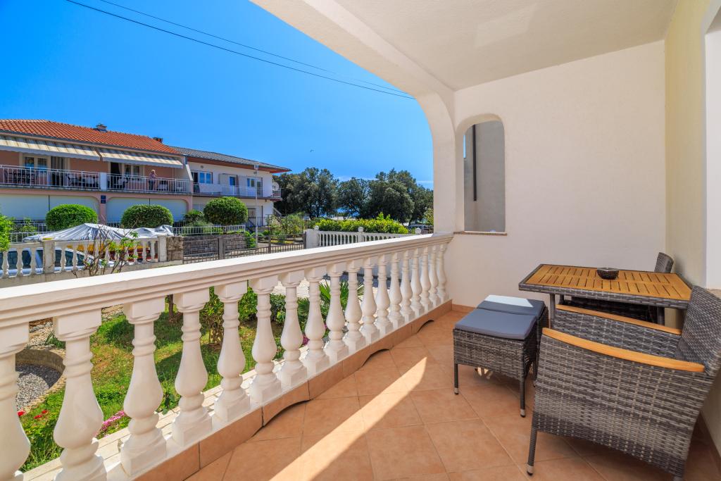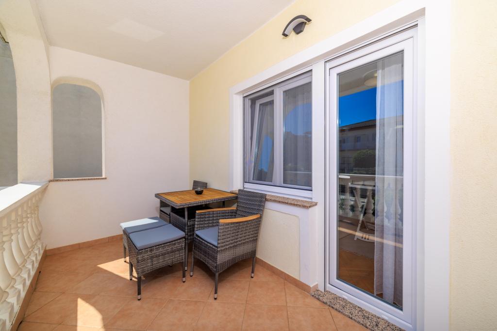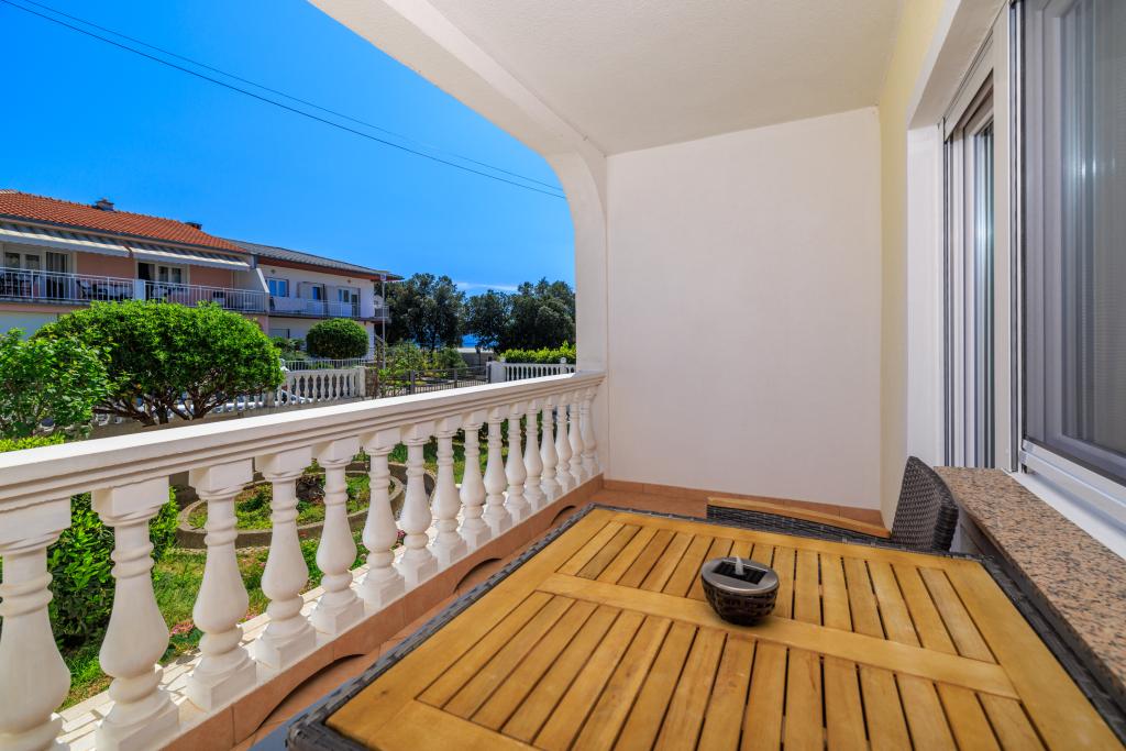 Byt se nachází v rodinném domě, hned vedle autokempu, pár minut od moře a známé pláže Rokan. Na promenádě, která se táhne celým městem, je řada restaurací, kaváren, sportovních zařízení a obchodů. Byt se skládá ze dvou velkých dvoulůžkových pokojů, každý s možností jedné přistýlky /rozkládací/, kuchyně s jídelnou, kde je rohová sedací souprava a TV, a prostorné koupelny s vanou a sprchovým koutem. V koupelně je pračka. Každý pokoj a kuchyně se otevírá na krytou terasu.