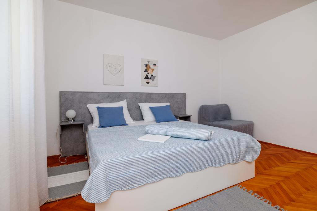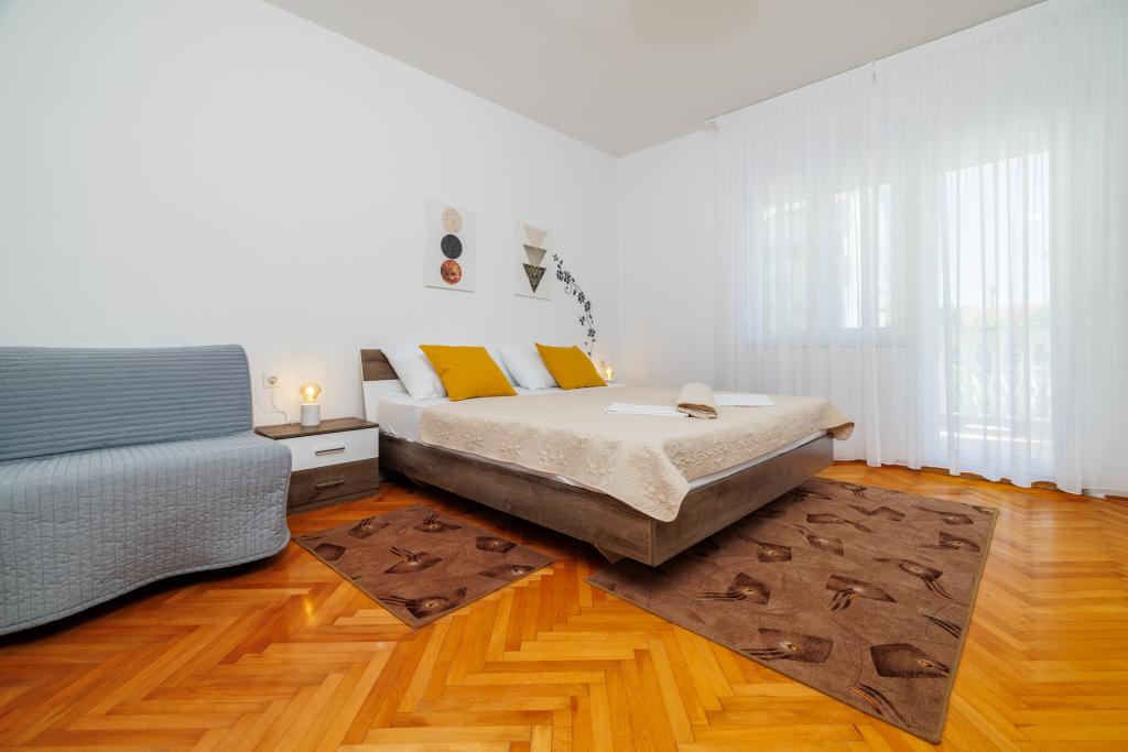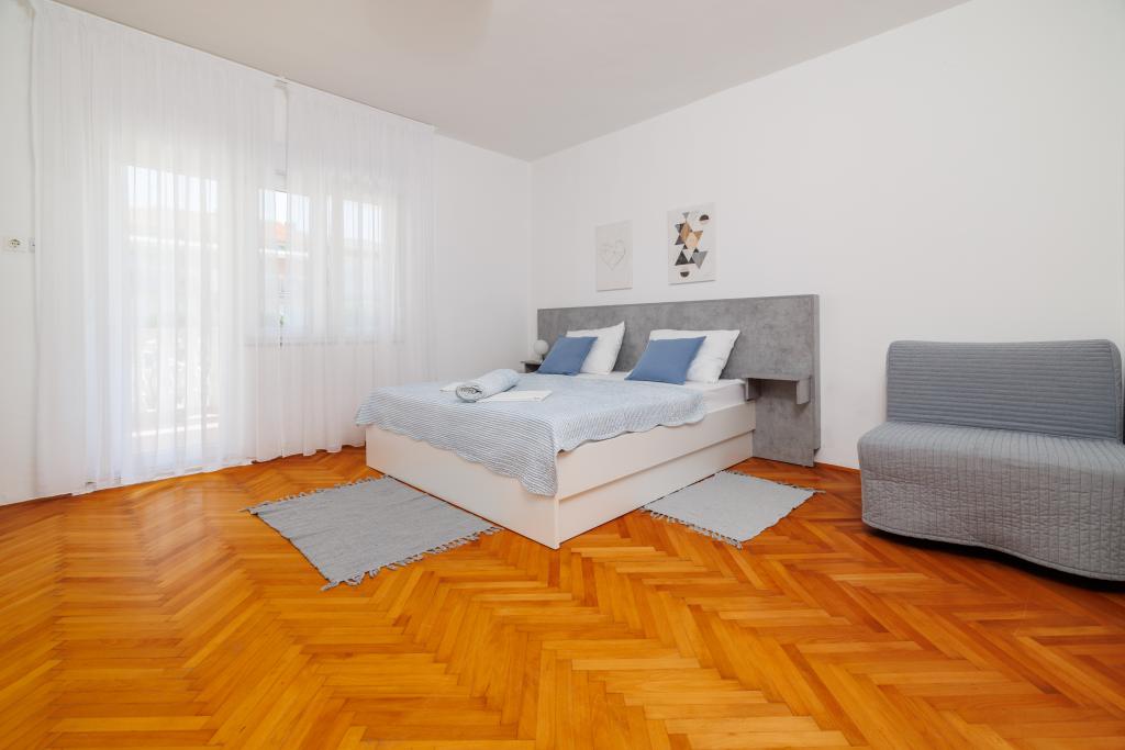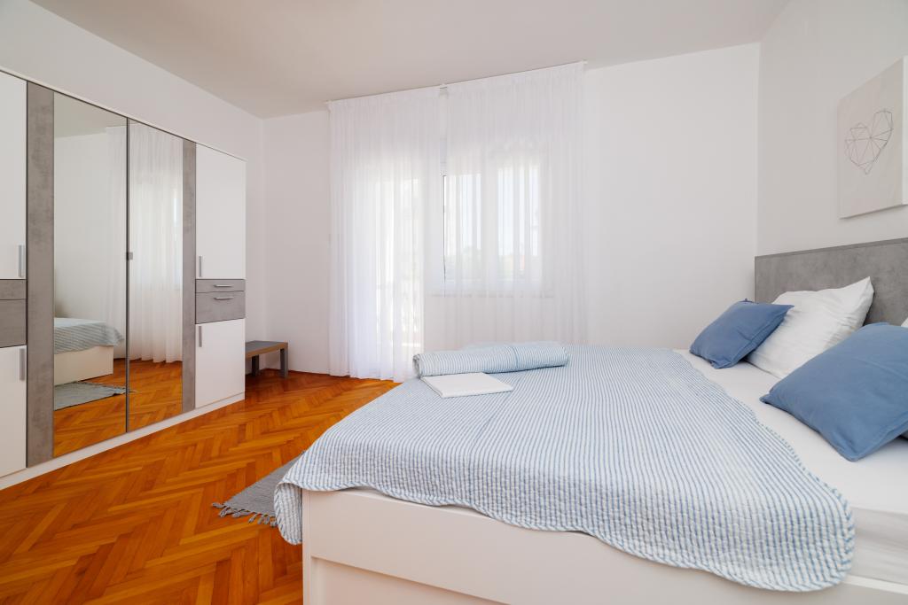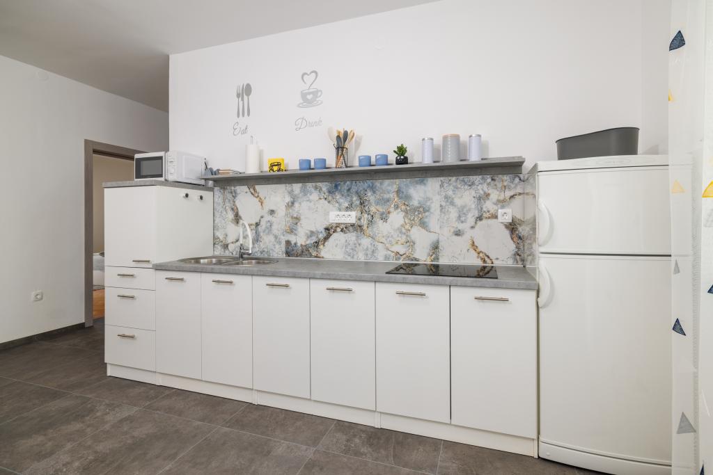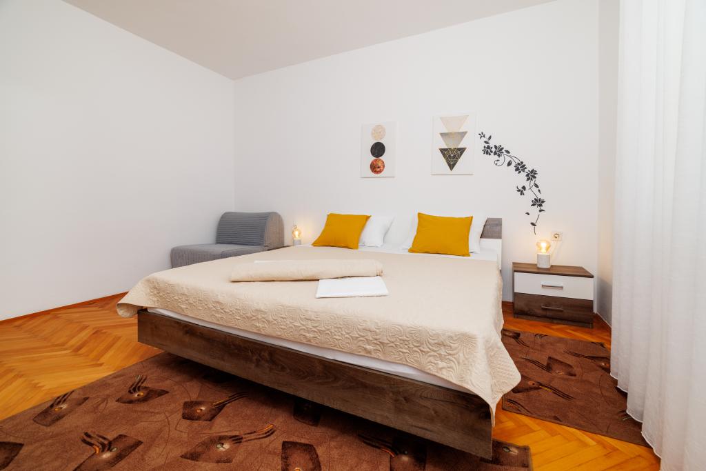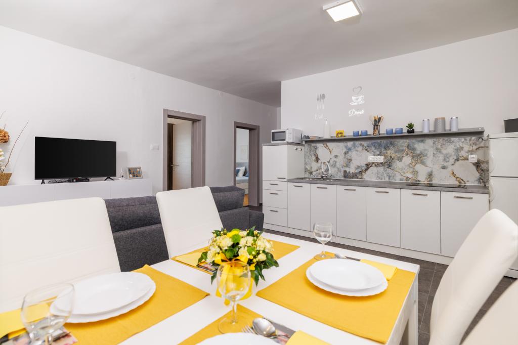 Byt se nachází v rodinném domě, hned vedle autokempu, pár minut od moře a známé pláže Rokan. Na promenádě, která se táhne celým městem, je řada restaurací, kaváren, sportovních zařízení a obchodů. Byt se skládá ze dvou velkých dvoulůžkových pokojů, každý s možností jedné přistýlky /rozkládací/, kuchyně s jídelnou, kde je rohová sedací souprava a TV, a prostorné koupelny s vanou a sprchovým koutem. V koupelně je pračka. Každý pokoj a kuchyně se otevírá na krytou terasu.