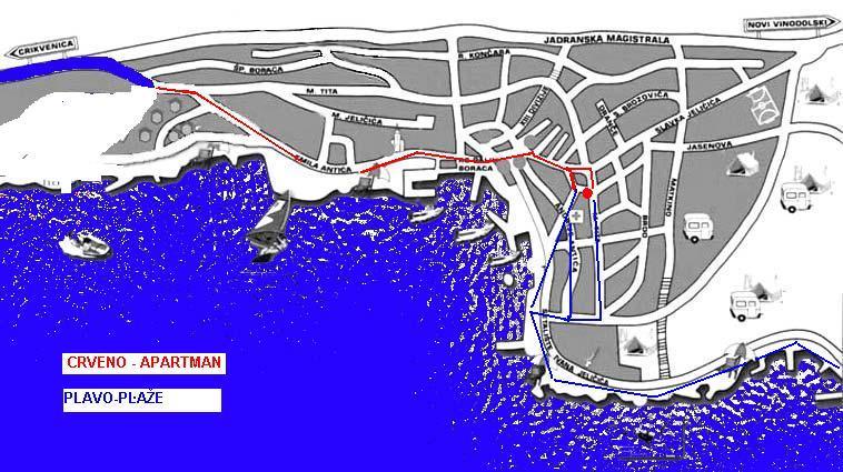 Apartmán v klidné části Selce. Pouze 4-5 minut od písečných pláží, restaurací, kaváren, centra, pošty a dalších služeb.