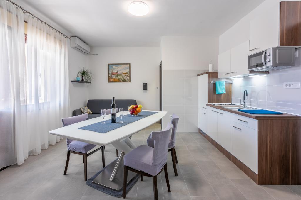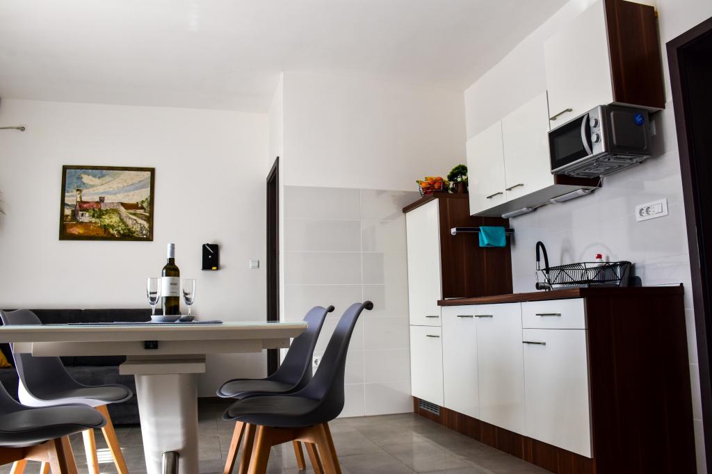 Apartmány jsou v rodinném domě, pár minut chůze od moře a promenády s řadou restaurací, kaváren, sportovních zařízení a obchodů. Apartmán "Ema" (2+2) se skládá z dvoulůžkového pokoje, kuchyně s jídelnou, kde je rozkládací dvoulůžko, které lze rozložit na dvojlůžko, koupelny a prostorné terasy s grilem. Druhý apartmán "Gita" (2+1) má dvoulůžkový pokoj, prostornou kuchyň s jídelnou s rozkládací pohovkou, koupelnu a prostornou terasu.