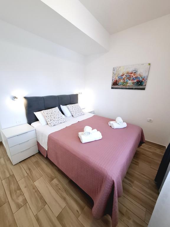 Apartmán 1 se nachází v přízemí rodinného domu s velkou soukromou terasou a částečným výhledem na moře. Plně vybavený, klimatizace, internet, parkování. Nachází se přibližně 300 m od moře a pláže a centra města. Skládá se ze dvou dvoulůžkových ložnic (jedna s manželskou postelí, jedna se dvěma samostatnými lůžky), obývacího pokoje, vybavené kuchyně s jídelnou (myčka), koupelny (pračka) a samostatné toalety. Parkování pro 1 vozidlo je zajištěno na dvoře domu. Studiový apartmán se nachází v přízemí (vysoké přízemí) rodinného domu. Má kuchyň, manželskou postel 160x200 cm, koupelnu, klimatizaci a malou terasu před studiem. Společné užívání grilu. Apartmán Lea se nachází ve 2. patře. Má 2 ložnice, vybavenou kuchyň, koupelnu (pračka), klimatizaci, velkou terasu s výhledem na moře. Parkování pro 1 auto je zajištěno na dvoře domu.