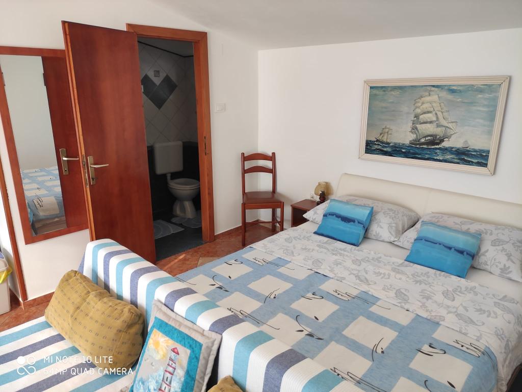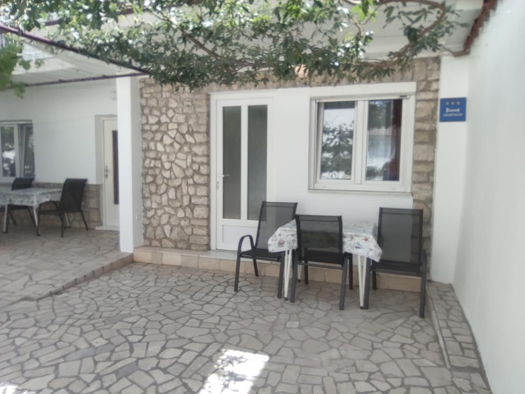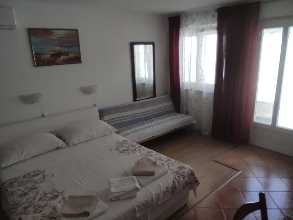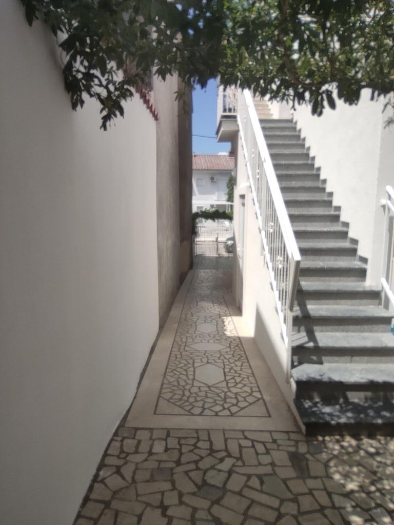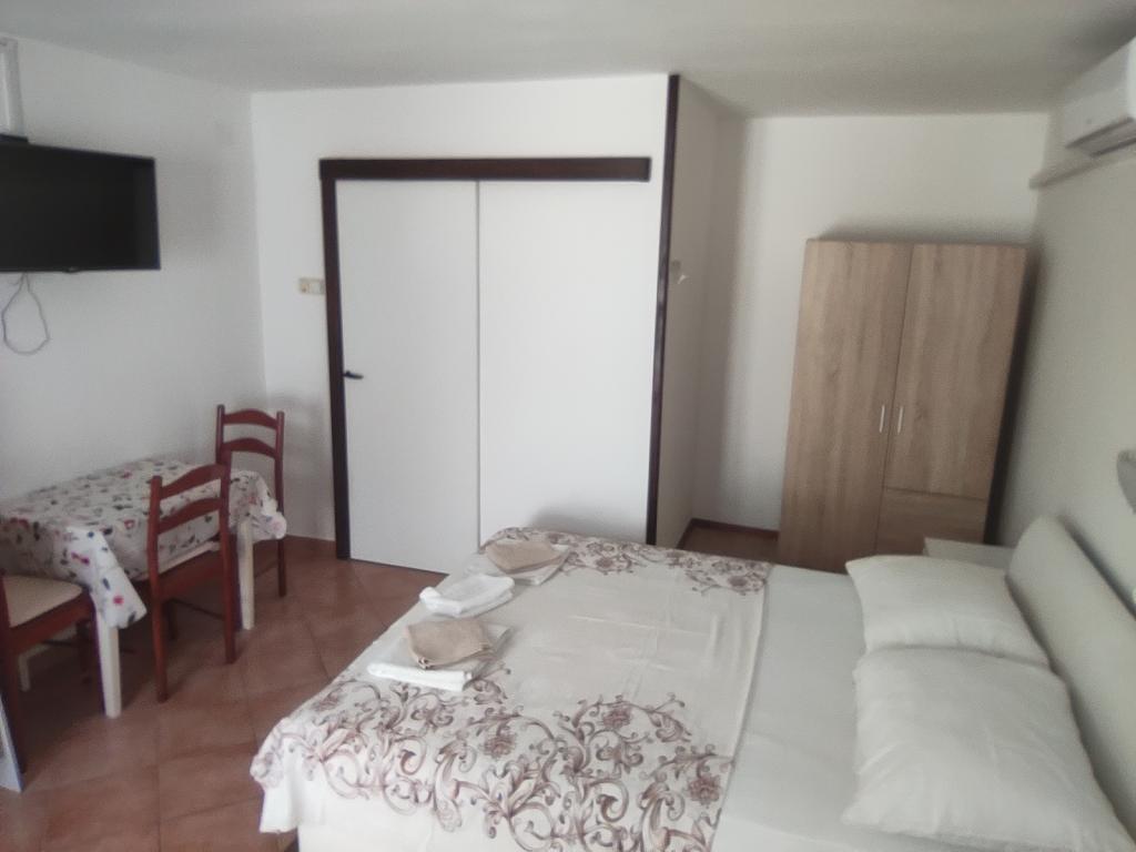 Malé studio, ideální pro dvě osoby. Přistýlka je rozkládací pohovka vhodná pro dospělého, ale pohodlnější pro děti. Byt se nachází ve druhé řadě od moře. Parkování je zajištěno a zahrnuto v ceně. Byt je součástí budovy s dalšími 3 ateliéry. Bytový dům se nachází za domem hostitele. Dvůr je využíván jak hosty, tak hostiteli.