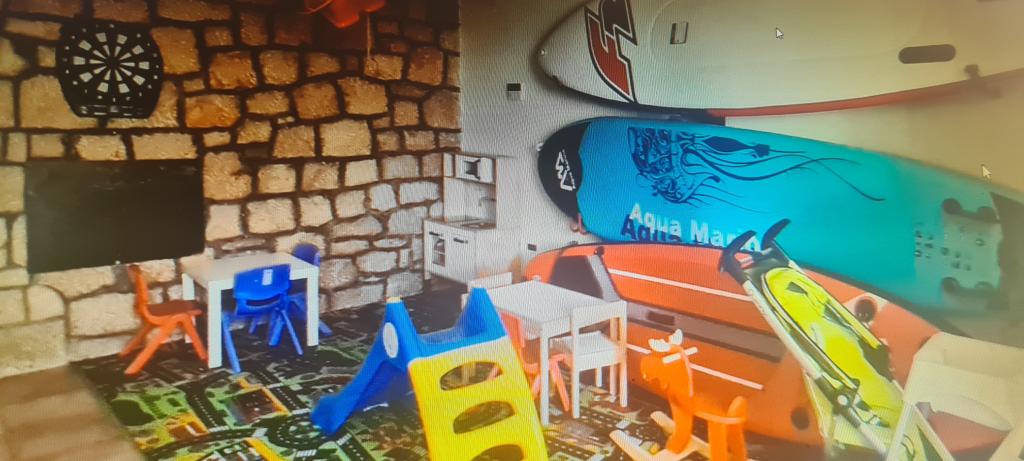 Našim hostům nabízíme další vybavení, jako jsou lehátka a slunečníky (v ceně), které si mohou vzít na pláž před domem, kola pro dospělé a děti, surfy, kajaky, dětská herna, klimatizace a další.