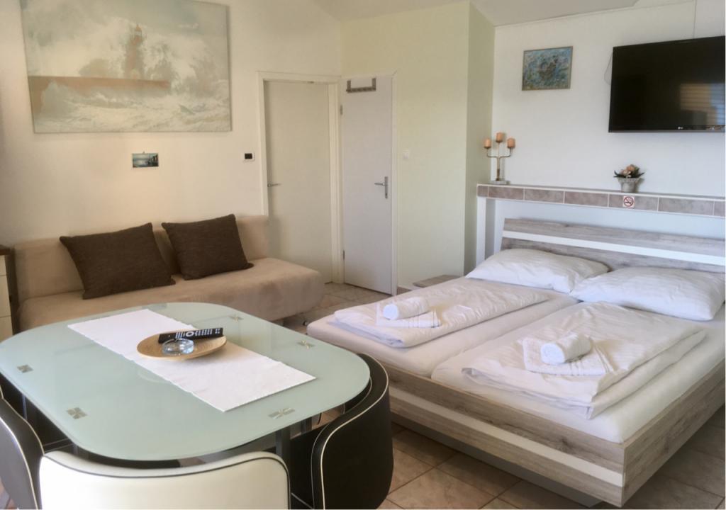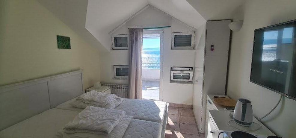 Apartmán je úhledný, čistý a vkusně zařízený a dobře vybavený. K dispozici jsou lehátka, slunečníky, prkna, kola, dětský koutek... Kromě lokality (první řada u moře) jsme nadšeni z velmi přátelské hostitelky Branky, která je hostům neustále k dispozici. Nenápadná, veselá, dobře míněná a vřelá paní Branka může být pro všechny nájemníky příkladem, jaký by měl být dobrý hostitel. Doporučujeme všem, mladým i starým, i rodinám s dětmi. Snídaně v ceně je pestrá a vyhovuje každému chuti.