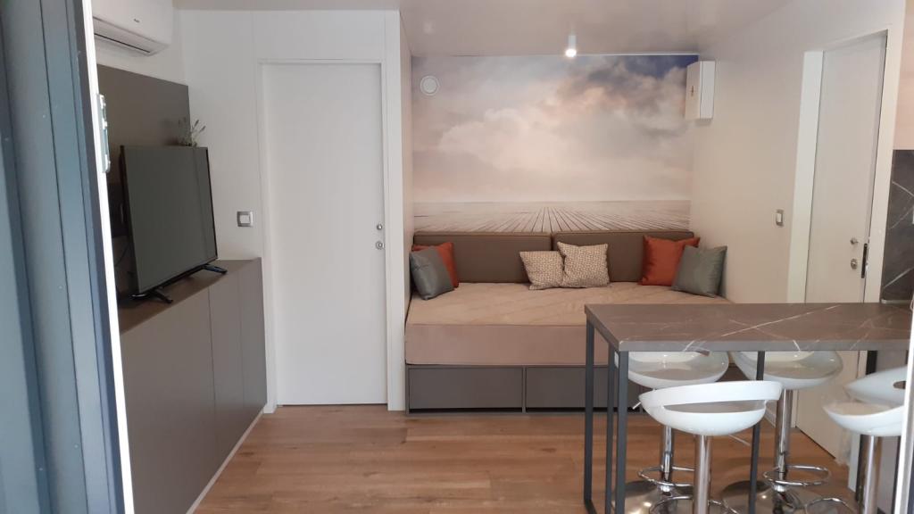 Máte chuť na něco jiného? Chcete si odpočinout v prostředí přírody a klidu? Někde mezi nebem a mořem je náš nový mobilní dům. Přesněji řečeno, nachází se v kempu Elements v klidné části Selce a je ideální pro dovolenou pro každého. Na prostorném pozemku v bezprostřední blízkosti moře, přesně 120 metrů! V tichu nedotčené přírody jsme dům umístili tak, aby vypadal jako jeviště pro krásné moře, slunce a ostrov Krk. Dům je obklopen přírodou. Začněte den na terase se zvukem cvrčků a vůní moře. Na 45 m2 se nachází jídelní stůl a rohová sedací souprava k odpočinku a dvě pohodlná lehátka. Na straně terasy je vám k dispozici gril. Interiér domu nabízí vše, a tak vám nebude chybět pohodlí a relax ve středomořském stylu. Dvě ložnice, koupelny, plně vybavená kuchyň, klimatizace, internet, TV. Ideální až pro 6 osob! Zavřete oči a představte si... jste na krásném místě obklopeném jasnými vodami Jadranu. Hodujte s námi a odpočiňte své duši i tělu.