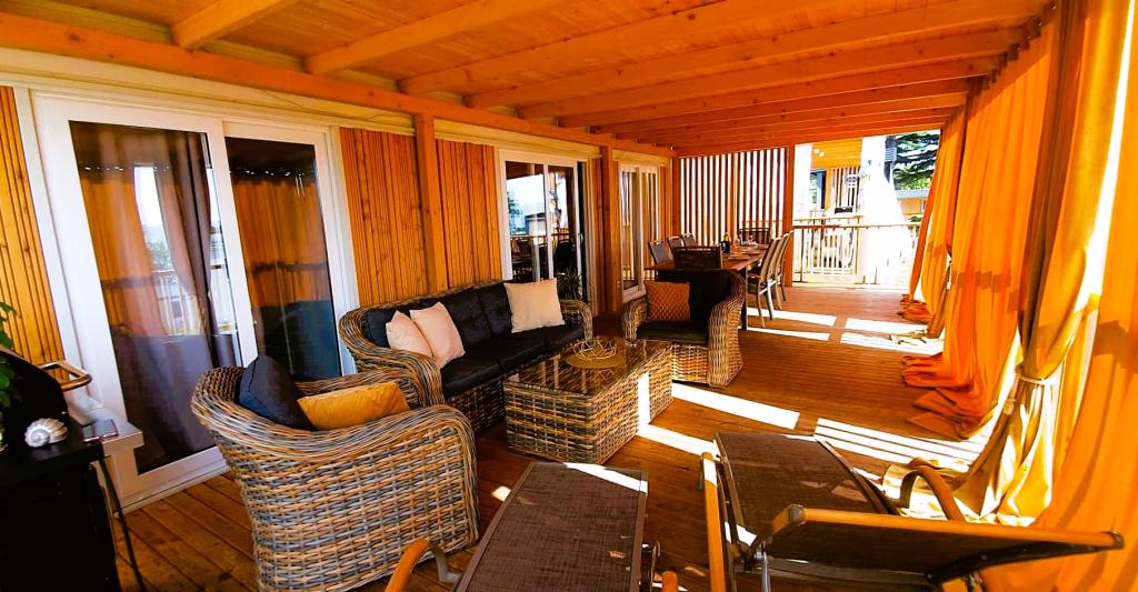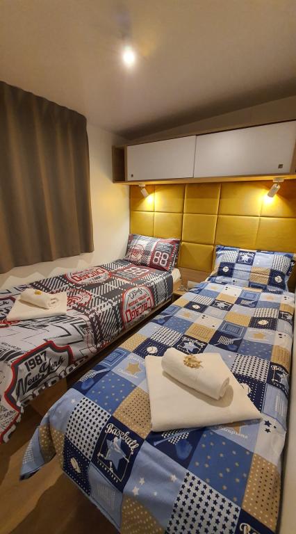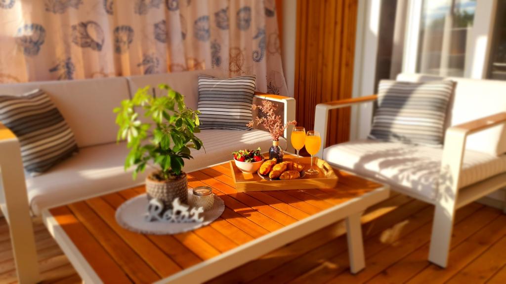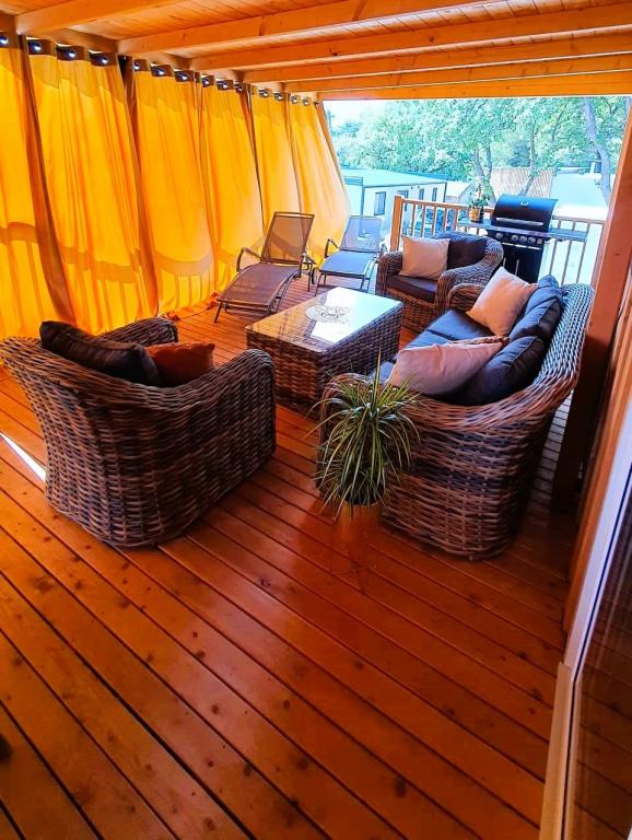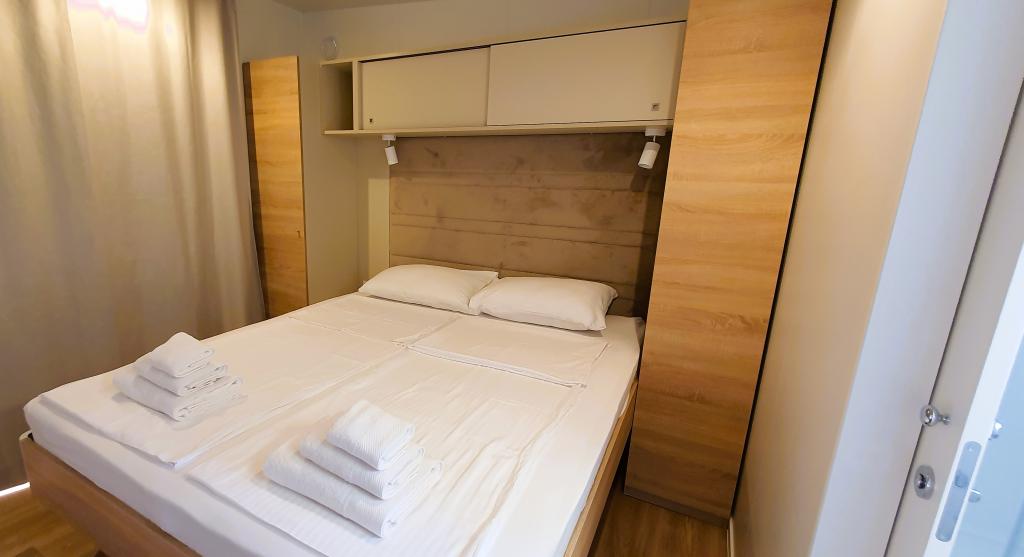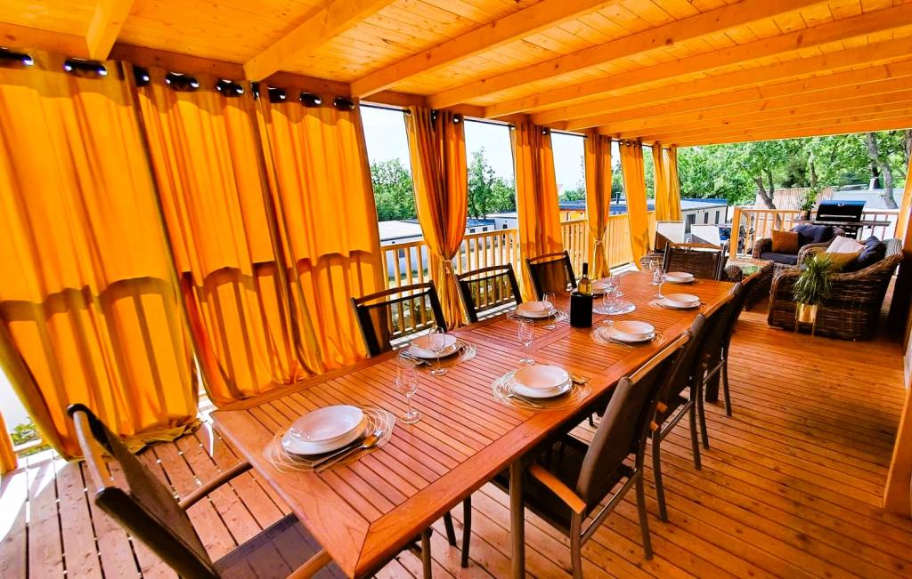 Naše mobilní prázdninové domy mají to nejlepší vybavení pro socializaci s lidmi, na kterých vám nejvíce záleží. Náš velký, nový mobilní dům má jednu ložnici s manželskou postelí a dvě dvoulůžkové ložnice, plně vybavený obývací pokoj, kuchyň a dvě koupelny, nedaleké parkovací místo a prostornou terasu s luxusním zahradním nábytkem a plynovým grilem. Naše mobilní domy jsou vhodné pro šesti až osmičlenné rodiny. Odpočiňte si na terase, u bazénu na lehátkách nebo na jedné z krásných pláží. Privilege Resorts je váš ideální resort.