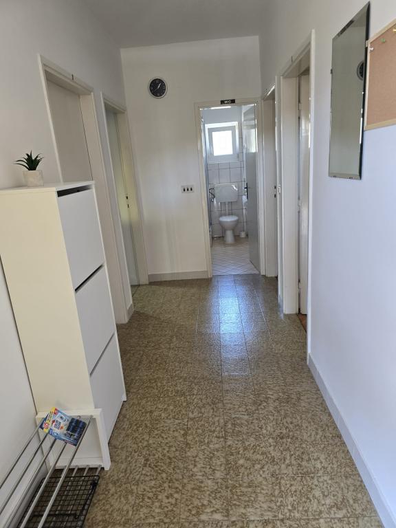 První patro rodinného domu v klidné části města se 2 ložnicemi, kuchyní/obývacím pokojem, terasou a dvorem, 2 koupelnami, ideální pro rodinu nebo přátele. Centrum, obchody, trh (sezónní), kavárny, autobusové nádraží a kostel jsou vzdáleny 60-100 metrů. Ambulance je vzdálena 200 metrů, stejně daleko je restaurace a 200 metrů moře a oblázková pláž. Letiště Zadar je 40 km daleko, 12 km od dálničního sjezdu Rovanjska. Národní park Paklenica je vzdálen 3 km, další NP - Kornati, Krka, Severní Velebit jsou vzdáleny hodinu jízdy, NP Plitvice jsou vzdáleny 2 hodiny jízdy. Parkování zdarma ve dvoře. Patro se pronajímá jako celek a není možné pronajmout pouze jeden pokoj. Cena je za celý byt bez ohledu na počet osob. Domácí zvířata bez ohledu na velikost nejsou povolena.
