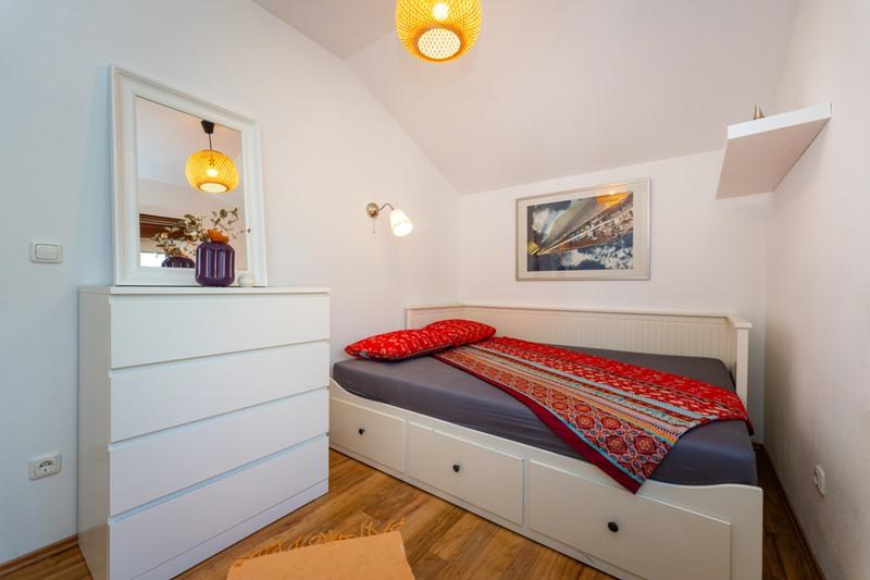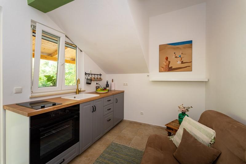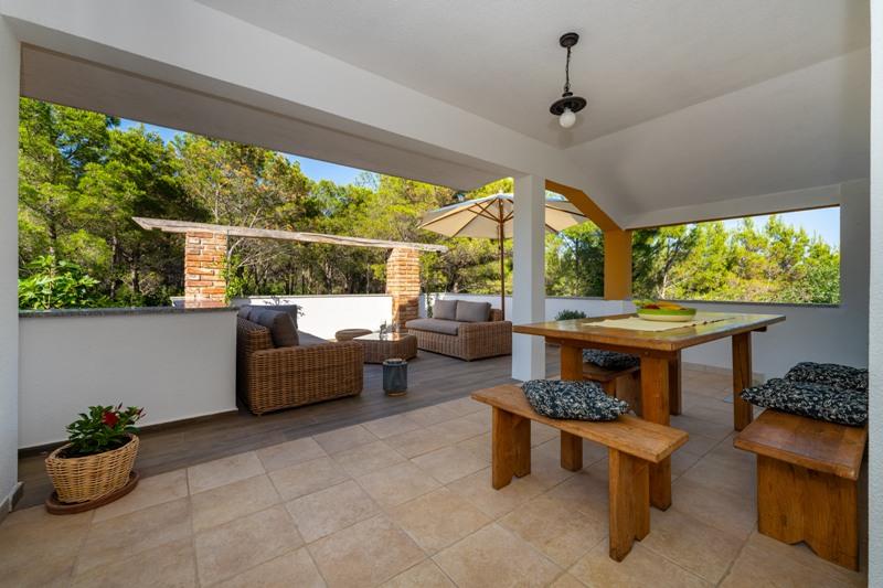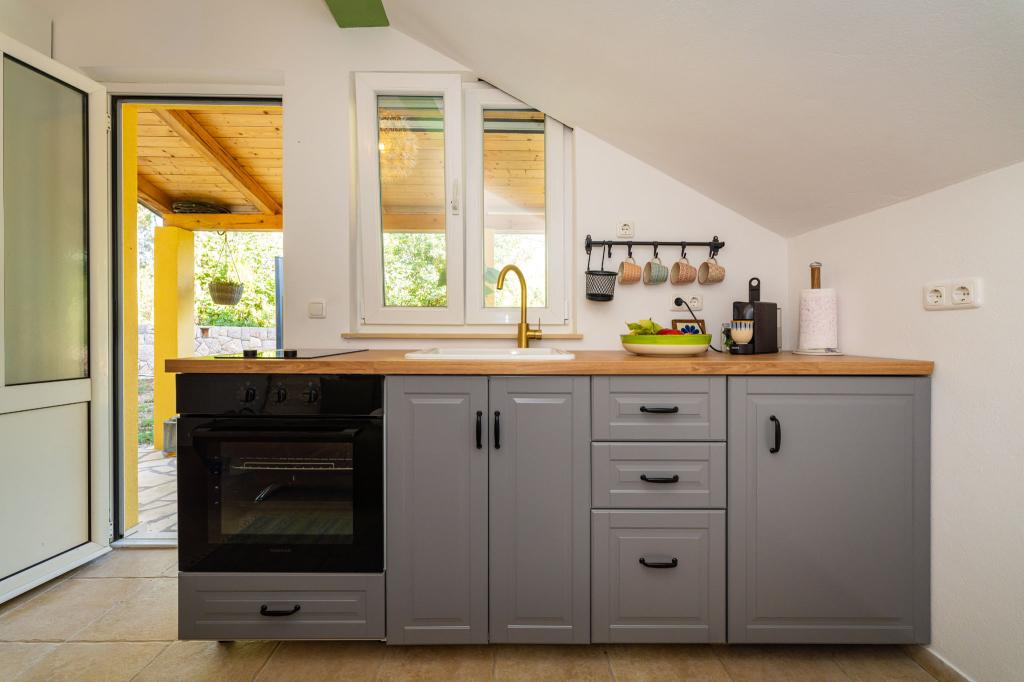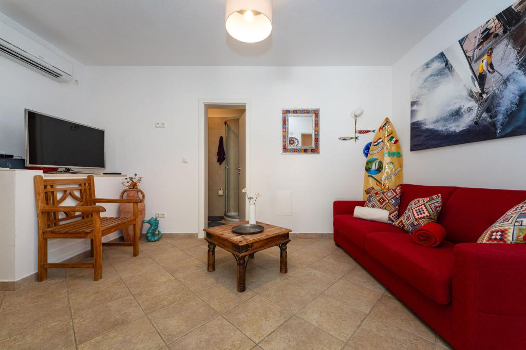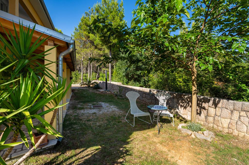 Objekt se nachází na klidném místě, u borového lesa a nedaleko od centra Selina (250 m). Ideální volba pro klidnou rodinnou dovolenou nebo dovolenou pro páry daleko od každodenního hluku a davů. Před domem je krásně upravená zahrada, kde si hosté mohou grilovat nebo odpočívat na lehátkách ve stínu borovic. V objektu jsou 2 apartmány - 1 apartmán pro 4 osoby (2 ložnice) a 1 apartmán pro 2 osoby. Jsou vybaveny veškerým zařízením nezbytným pro příjemnou a uvolněnou dovolenou. Každý apartmán má SAT-TV, klimatizaci a Wi-Fi. K dispozici je také zahradní sprcha.