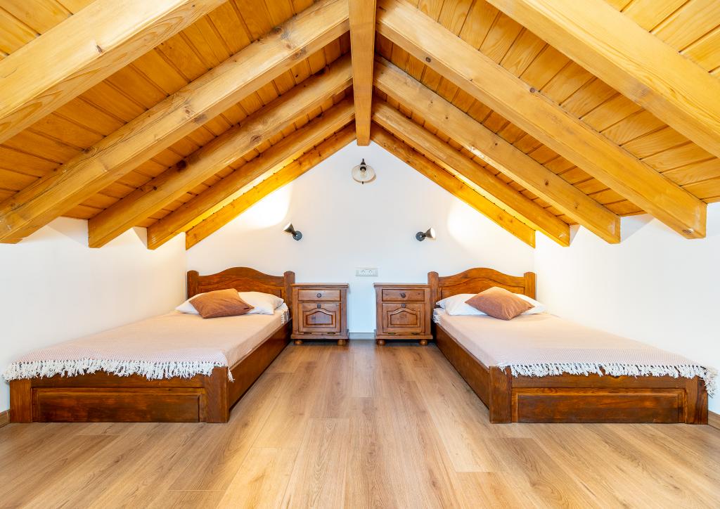Goranův dům je tradiční dalmatský kamenný dům starší 200 let. Byl zrenovován v roce 2019. Během obnovy jsme se pokusili zachovat tradiční styl a zachovat kulturní dědictví. V přízemí je kuchyň, jídelna, obývací pokoj a toaleta. Vstup do horního patra je z vnějšku, v prvním patře je ložnice a koupelna. Z ložnice jsou otevřené dřevěné schody do podkroví, kde je další ložnice. Dům se nachází na úpatí Velebitu, v osadě Jusupi, kousek od vchodu do Malé Paklenice. Výhled se rozšiřuje na Velebit a moře. Je obklopen 5 dalšími starými kamennými domy, z nichž pouze jeden byl zrekonstruován. Ideální pro radost z přírody, krásný národní park a krásné pláže a čisté moře.