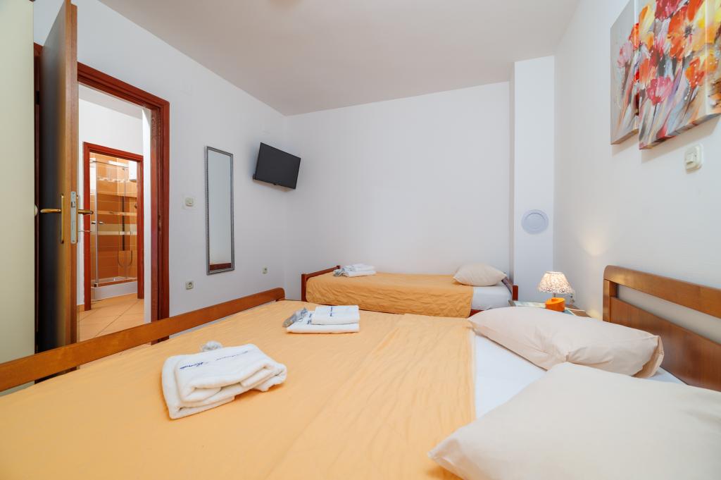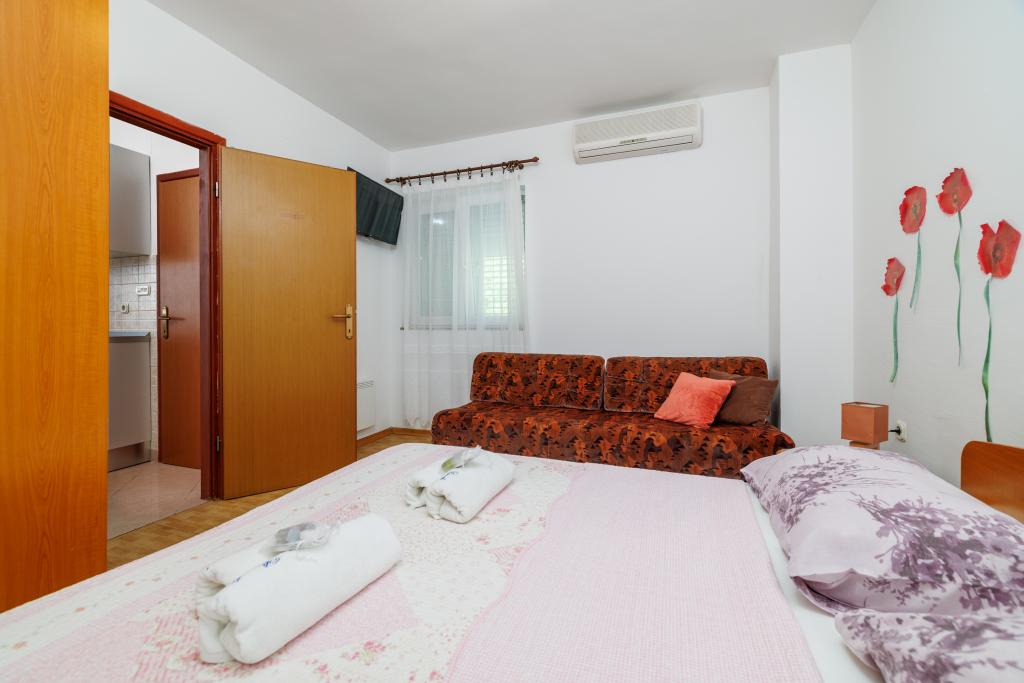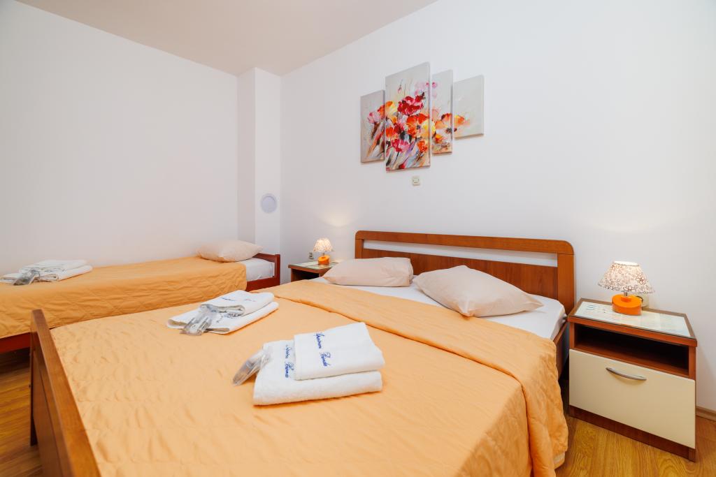 Komfortní pokoje, součástí pokoje je koupelna, balkon, lednička. To se nachází ve velmi klidné části města a pouhých 5 minut od pláže. Je klimatizovaný, a parkoviště pro vozidla. Na zahradě je gril a stůl se židlemi, takže je to možné a večeřet. Mario a jeho rodina jsou velmi servis a jsou vždy tam odpovědět na Vaše dotazy. Děkujeme vám za vaši krátké, ale krásné místnosti. Tina a Tom