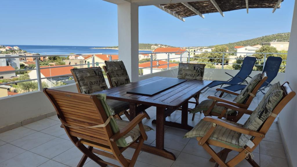 Nezapomenutelný výhled z nejkrásnější terasy, kde jsme strávili nádherné chvíle. Byt je pohodlný, čistý, pěkně zařízený a se spoustou úložných skříněk, ani jsme nezapnuli klimatizaci, protože i v nejteplejších dnech vždy alespoň trochu osvěžující vítr. Místo je klidné, ideální pro rodinnou dovolenou. Moře je nádherné, pláže jsou 3 minuty chůze a moře je klidné, protože pokud fouká na jedné straně poloostrova, druhá strana je klidná. Koneckonců existují nejlepší hostitelé všech dob, přátelští a velkorysí. Moc rádi bychom se vrátili do krásné Sevid.